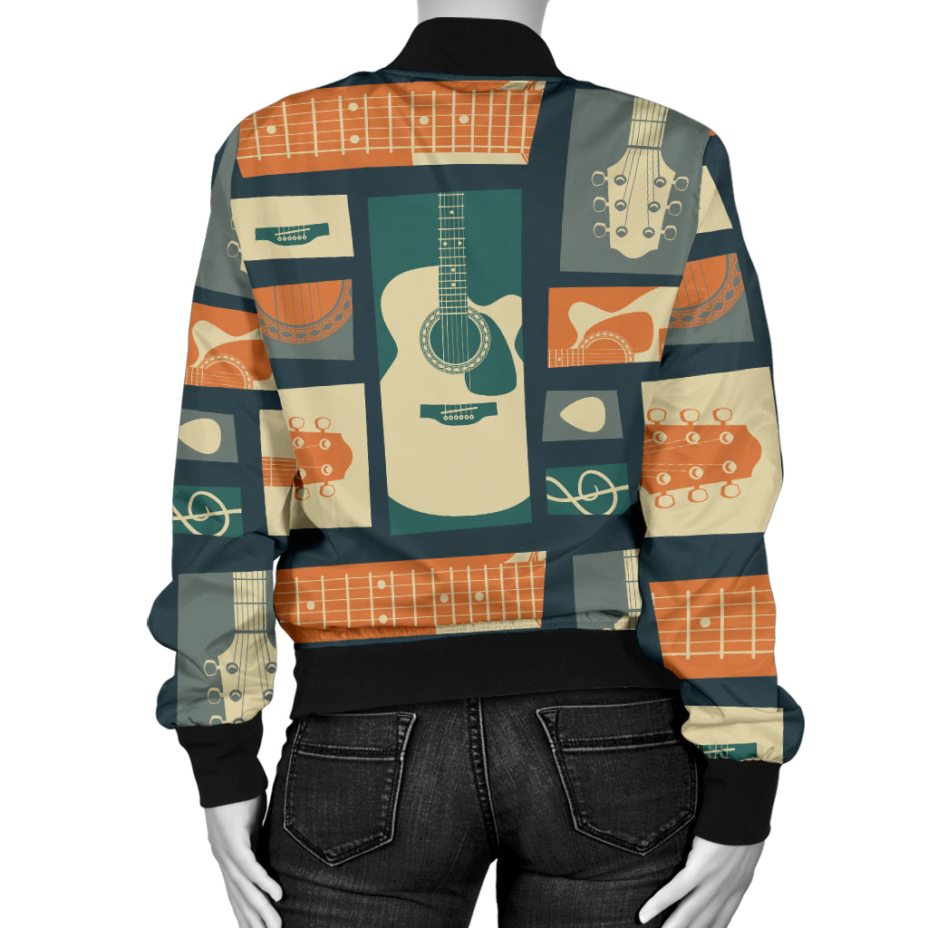 Acoustic Guitar Pattern Print Design 02 Women's Bomber Jacket