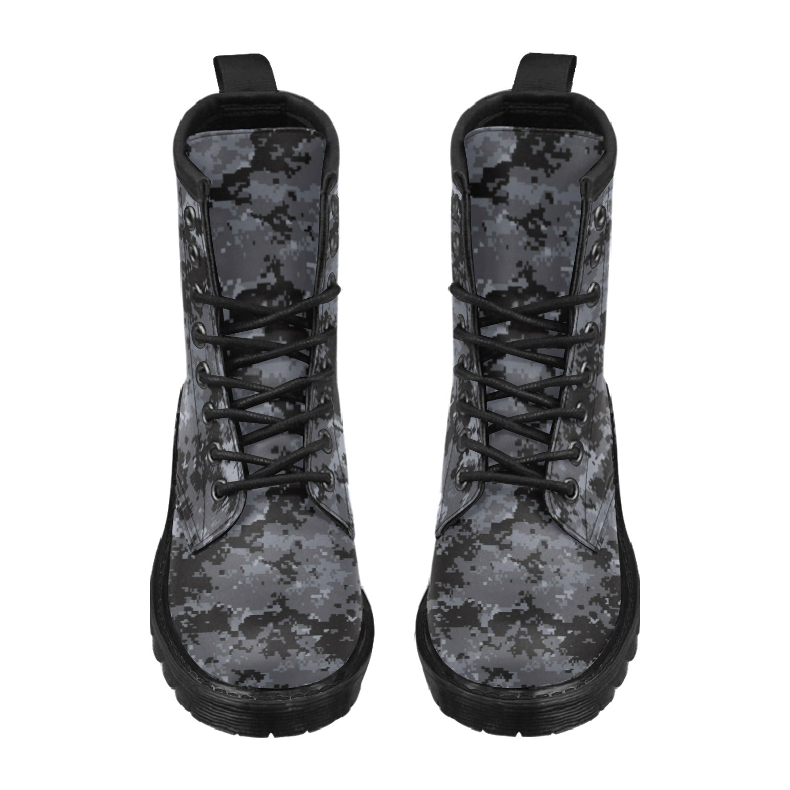 ACU Digital Black Camouflage Women's Boots Made to Order Item. It is hand-cut and sewn just for your order! This process starts as soon as your order is placed and may have a processing time of 5-9 business days before it ships.
