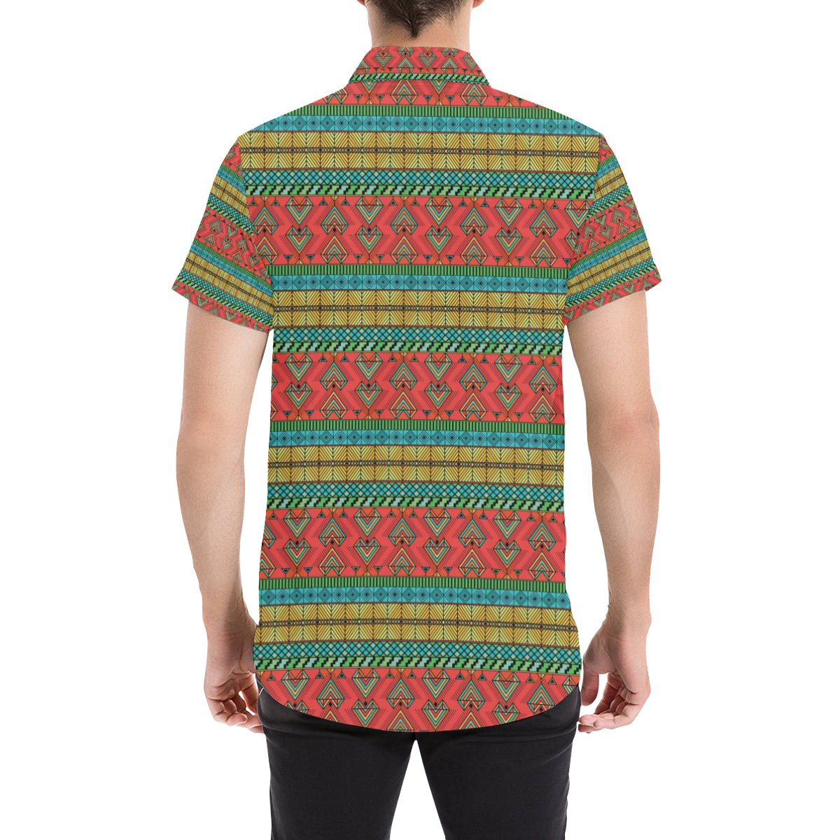 African Colorful Zigzag Print Pattern Men's Short Sleeve Button Up Shirt Made to Order Item. It is hand-cut and sewn just for your order! This process starts as soon as your order is placed and may have a processing time of 5-9 business days before it ships.