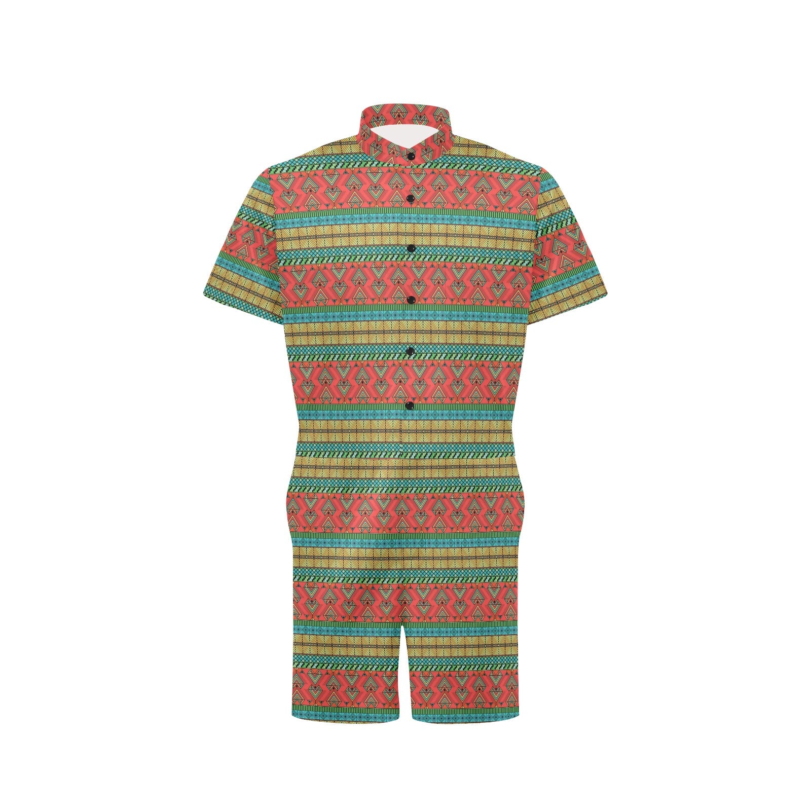 African Colorful Zigzag Print Pattern Men's Romper