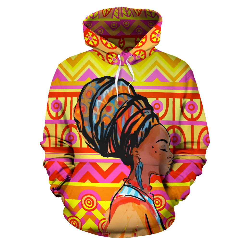 African Girl Aztec Pullover Hoodie Made to Order Item. It is hand-cut and sewn just for your order! This process starts as soon as your order is placed and may have a processing time of 5-9 business days before it ships.