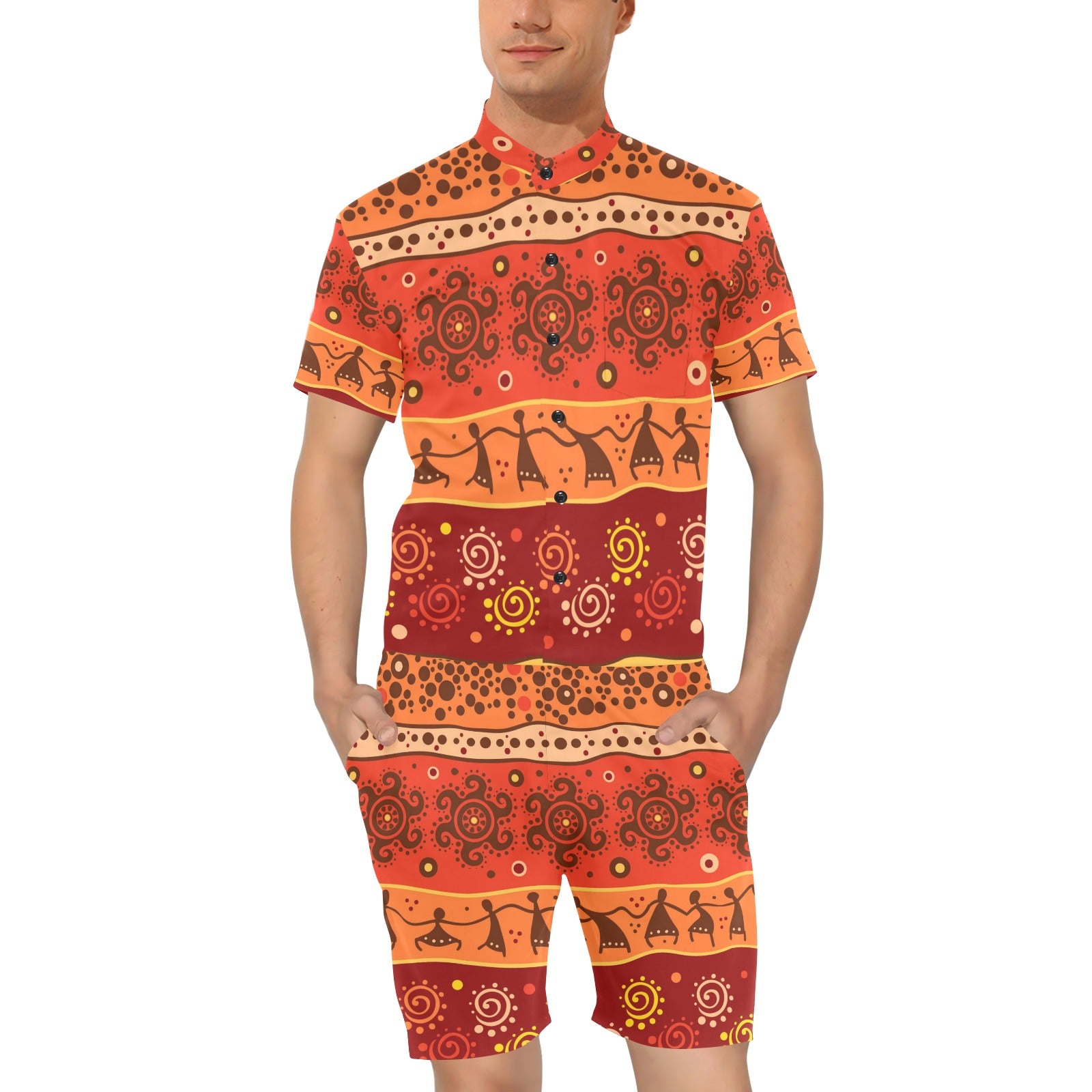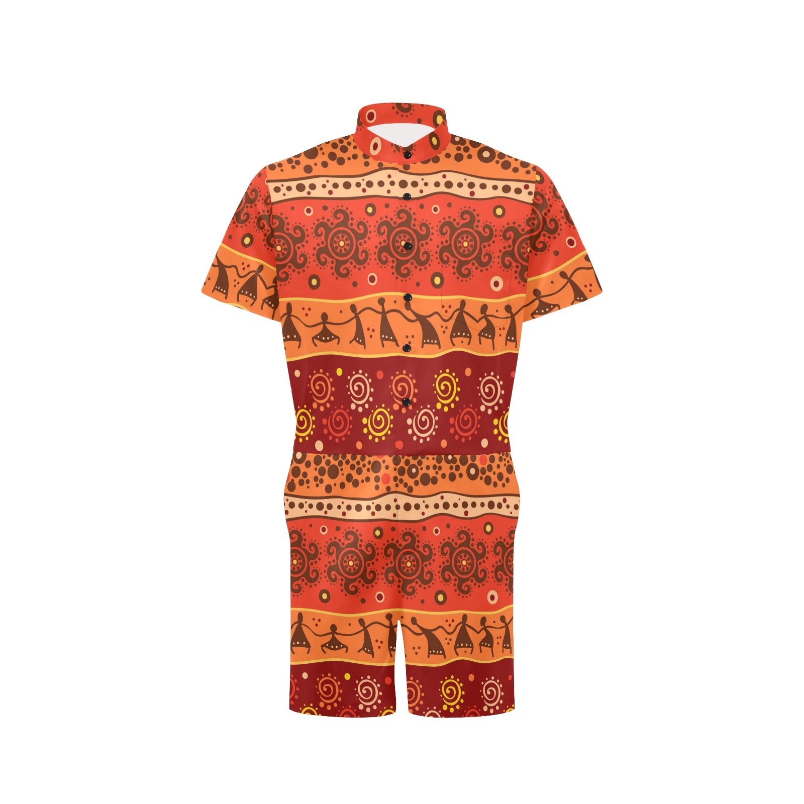 African Pattern Print Design 04 Men's Romper Made to Order Item. It is hand-cut and sewn just for your order! This process starts as soon as your order is placed and may have a processing time of 5-9 business days before it ships.