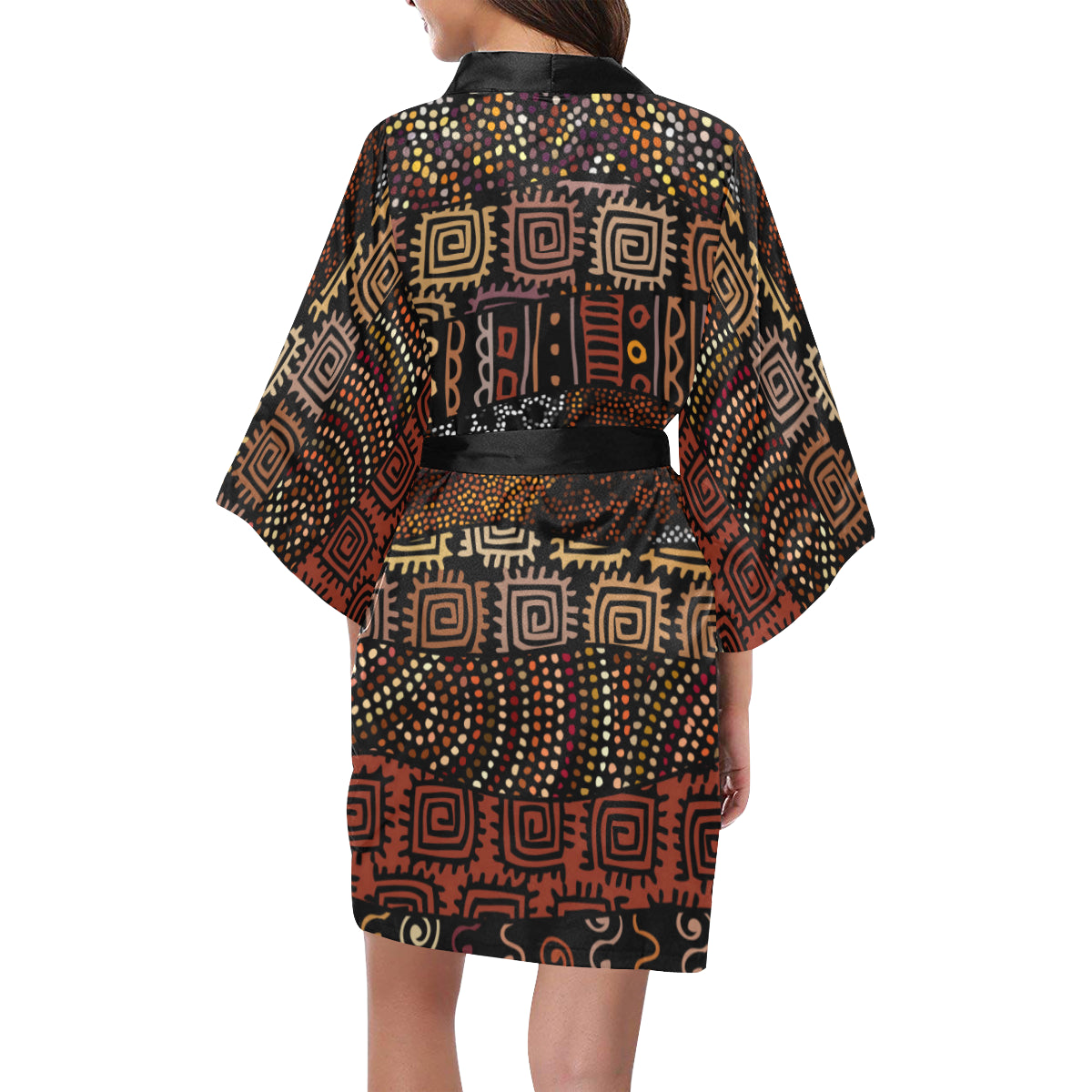African Pattern Print Design 07 Women's Short Kimono Made to Order Item. It is hand-cut and sewn just for your order! This process starts as soon as your order is placed and may have a processing time of 5-9 business days before it ships.