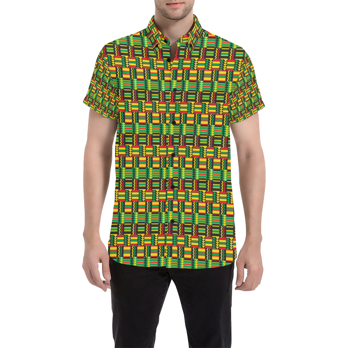 African Zip Zag Print Pattern Men's Short Sleeve Button Up Shirt Made to Order Item. It is hand-cut and sewn just for your order! This process starts as soon as your order is placed and may have a processing time of 5-9 business days before it ships.