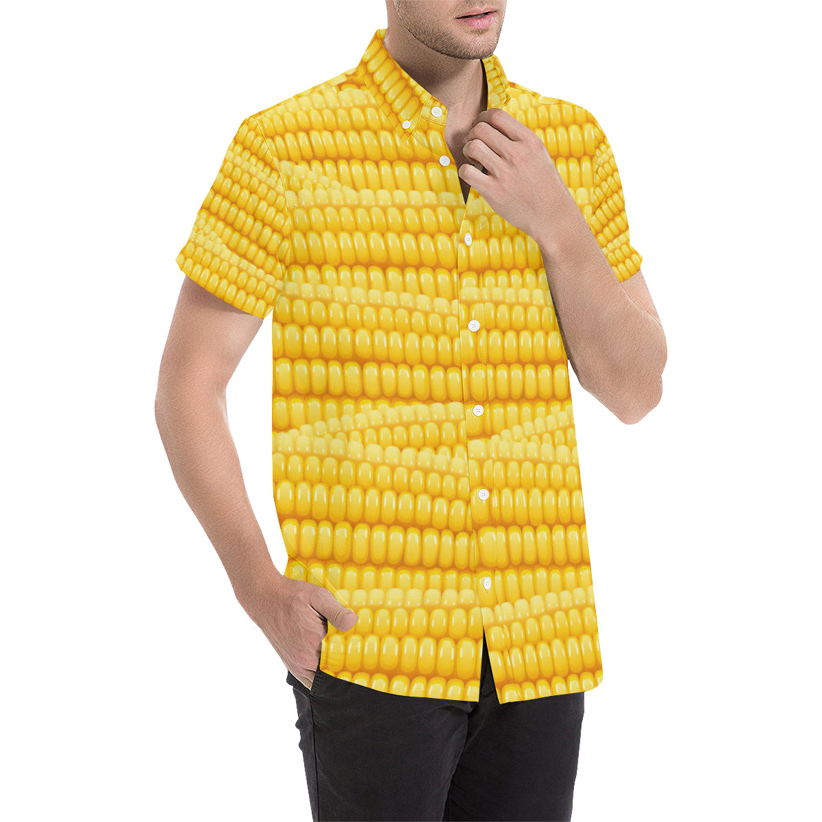 Agricultural Corn cob Pattern Men's Short Sleeve Button Up Shirt Made to Order Item. It is hand-cut and sewn just for your order! This process starts as soon as your order is placed and may have a processing time of 5-9 business days before it ships.