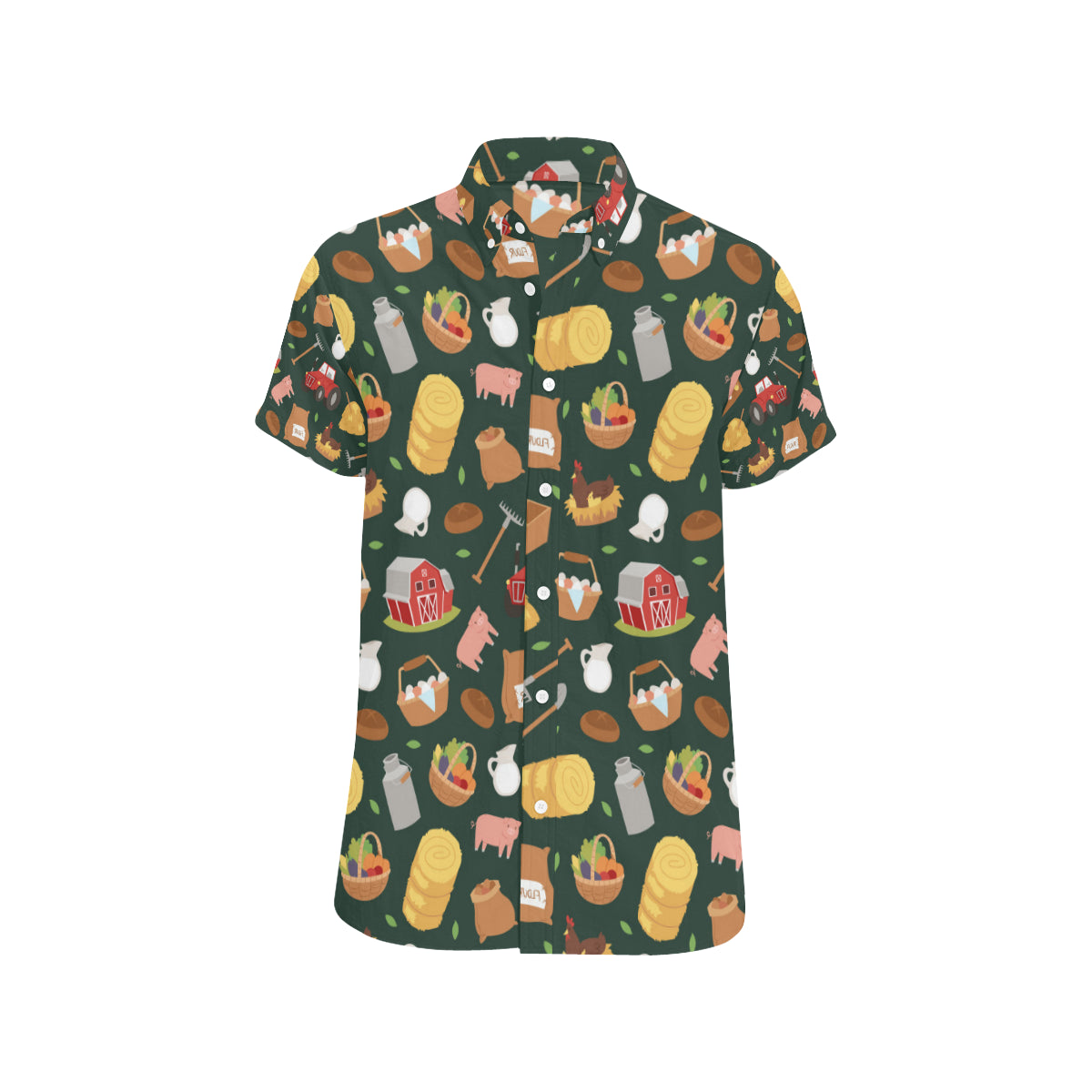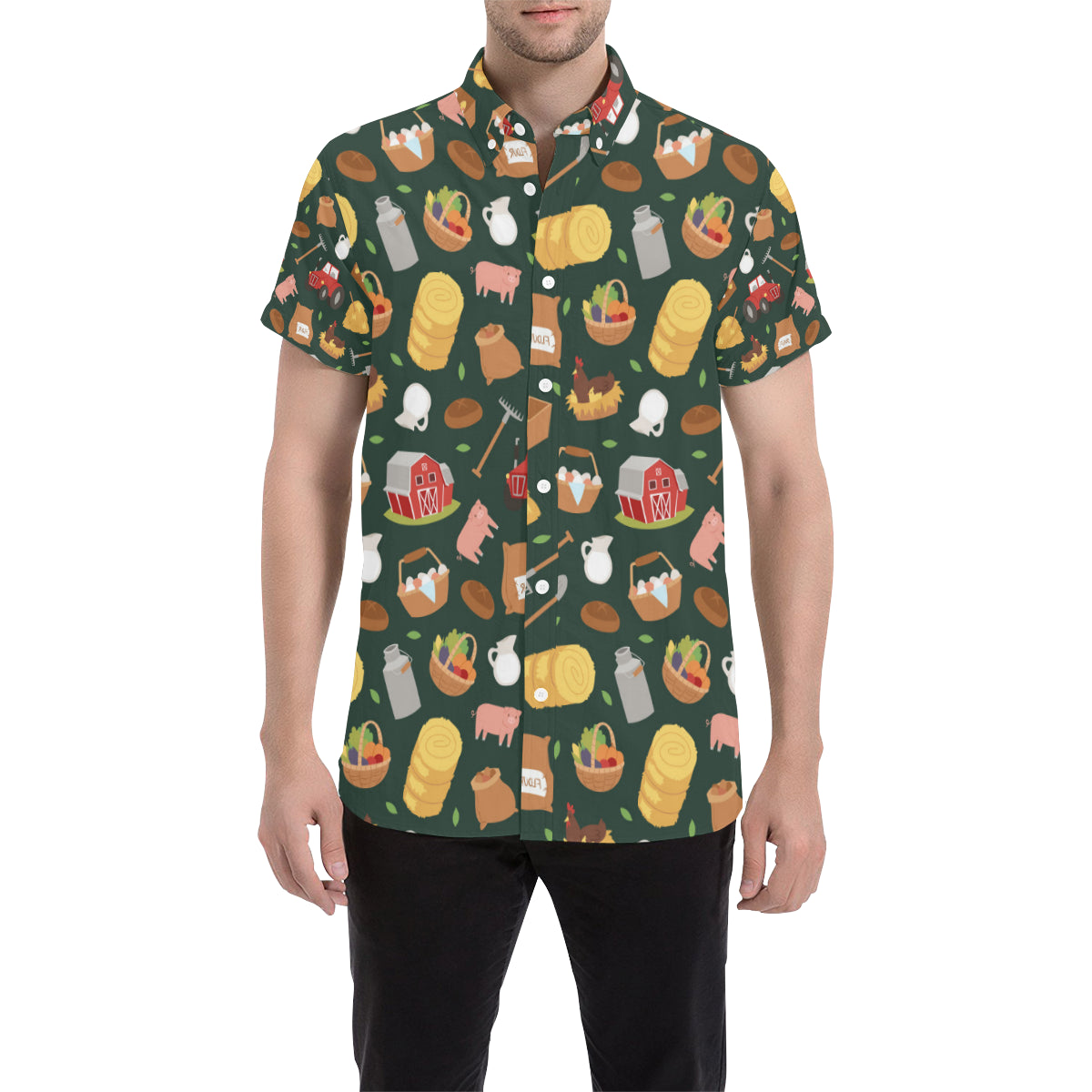 Agricultural Farm Print Design 02 Men's Short Sleeve Button Up Shirt Made to Order Item. It is hand-cut and sewn just for your order! This process starts as soon as your order is placed and may have a processing time of 5-9 business days before it ships.