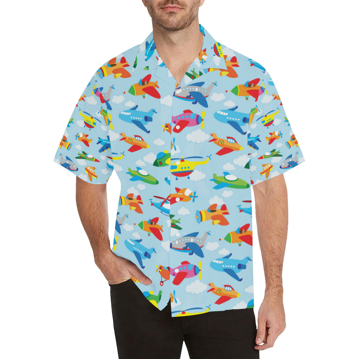 Airplane Colorful Pattern Print Design 01 Men's Hawaiian Shirt Custom handmade Printing and Sewing, Limited Edition Not Available in Store.