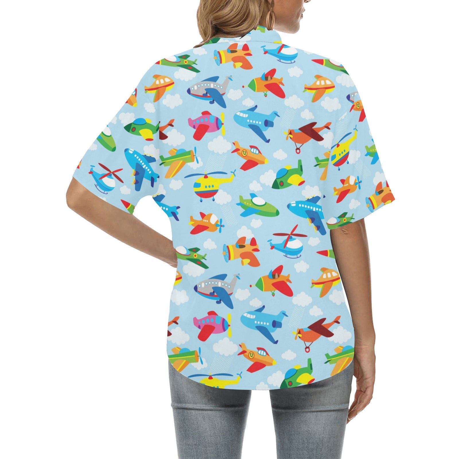 Airplane Colorful Pattern Print Design 01 Women's Hawaiian Shirt
