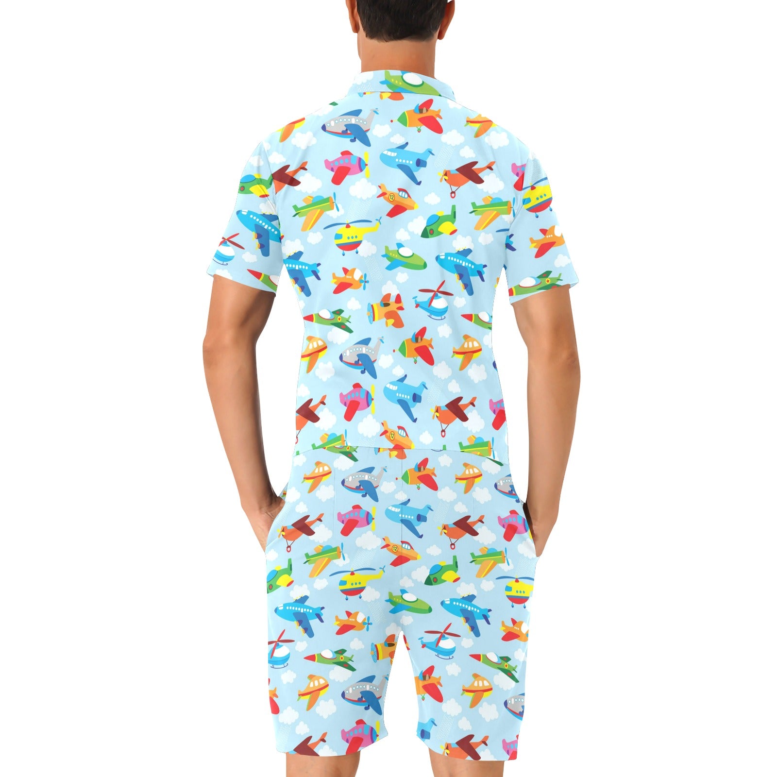 Airplane Colorful Pattern Print Design 01 Men's Romper