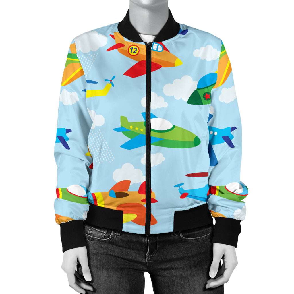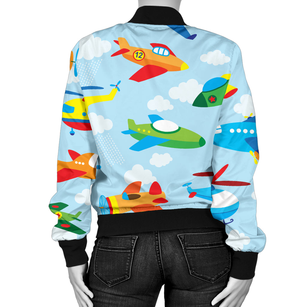 Airplane Colorful Pattern Print Design 01 Women's Bomber Jacket