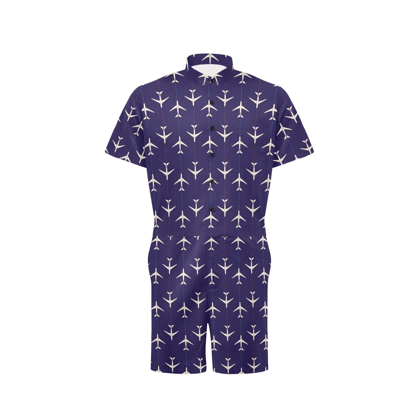 Airplane Pattern Print Design 03 Men's Romper Made to Order Item. It is hand-cut and sewn just for your order! This process starts as soon as your order is placed and may have a processing time of 5-9 business days before it ships.
