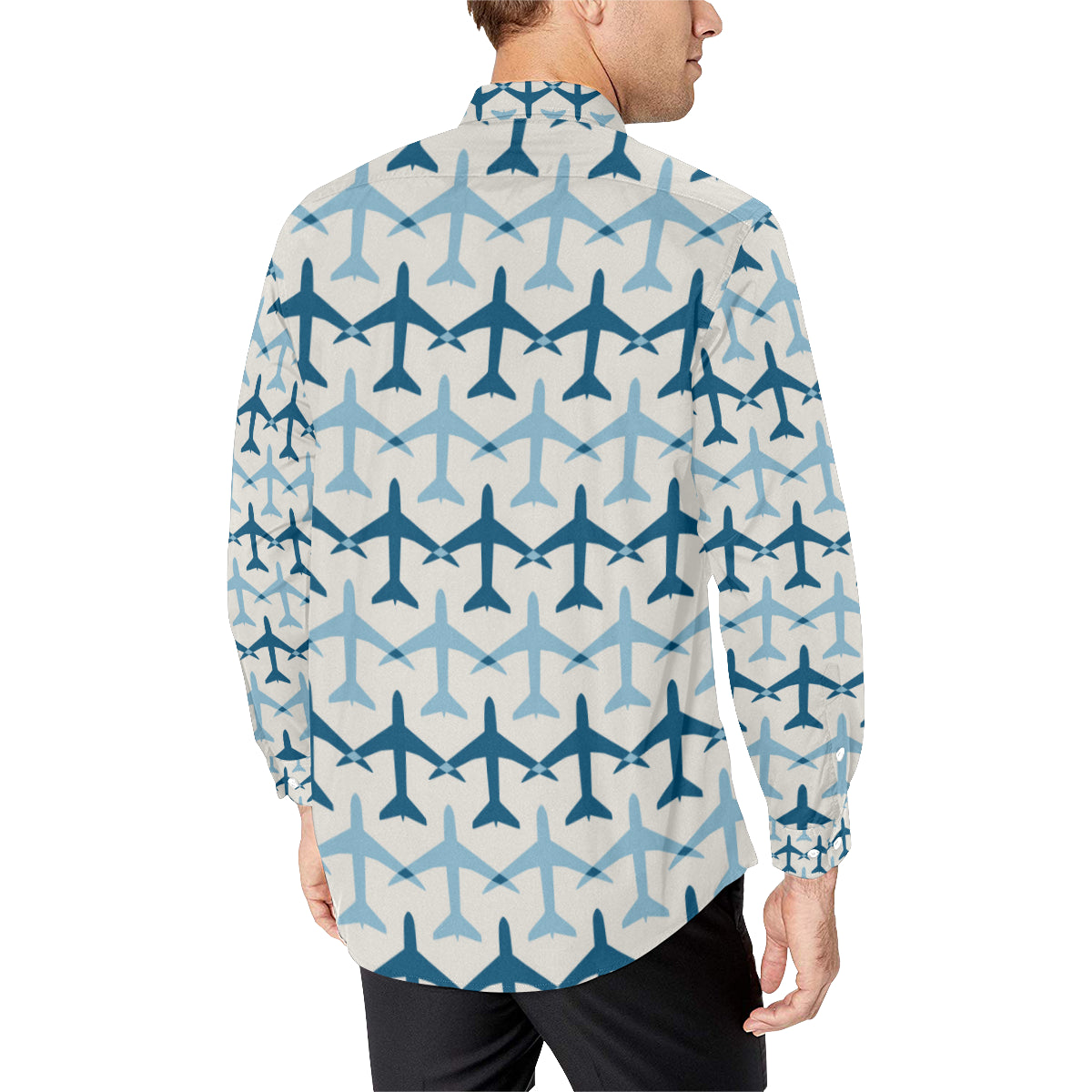 Airplane Pattern Print Design 04 Men's Long Sleeve Shirt
