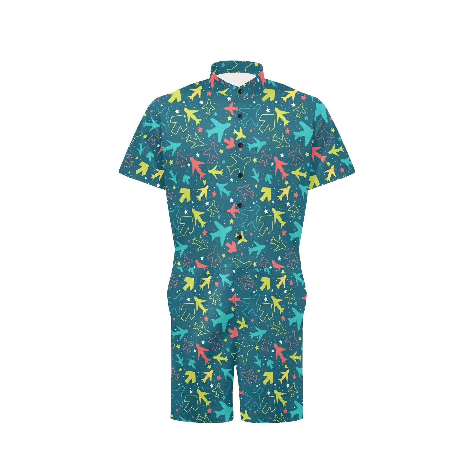 Airplane Pattern Print Design 05 Men's Romper Made to Order Item. It is hand-cut and sewn just for your order! This process starts as soon as your order is placed and may have a processing time of 5-9 business days before it ships.