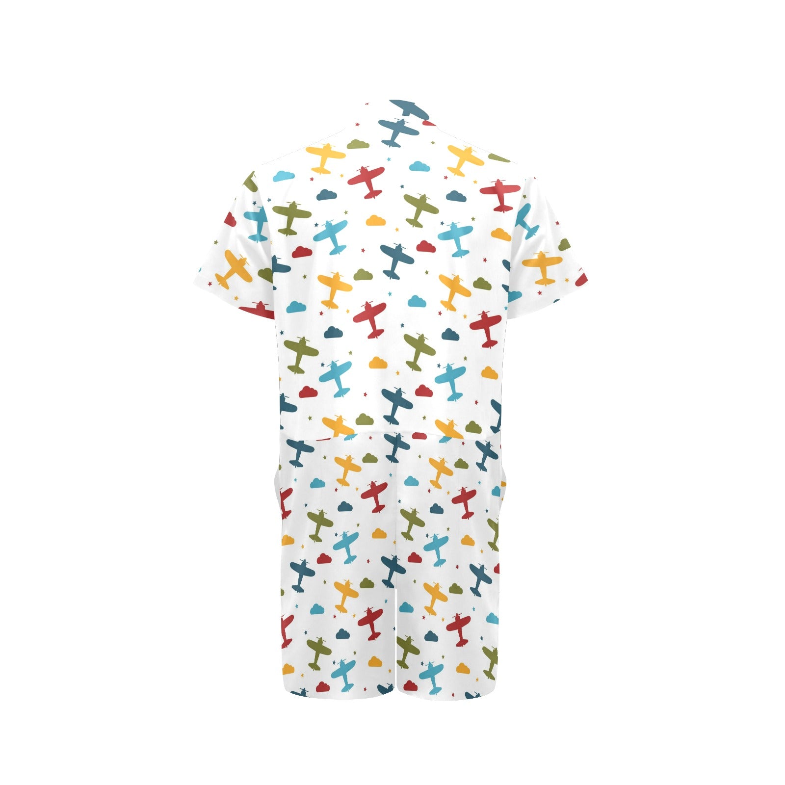 Airplane Pattern Print Design 06 Men's Romper Made to Order Item. It is hand-cut and sewn just for your order! This process starts as soon as your order is placed and may have a processing time of 5-9 business days before it ships.