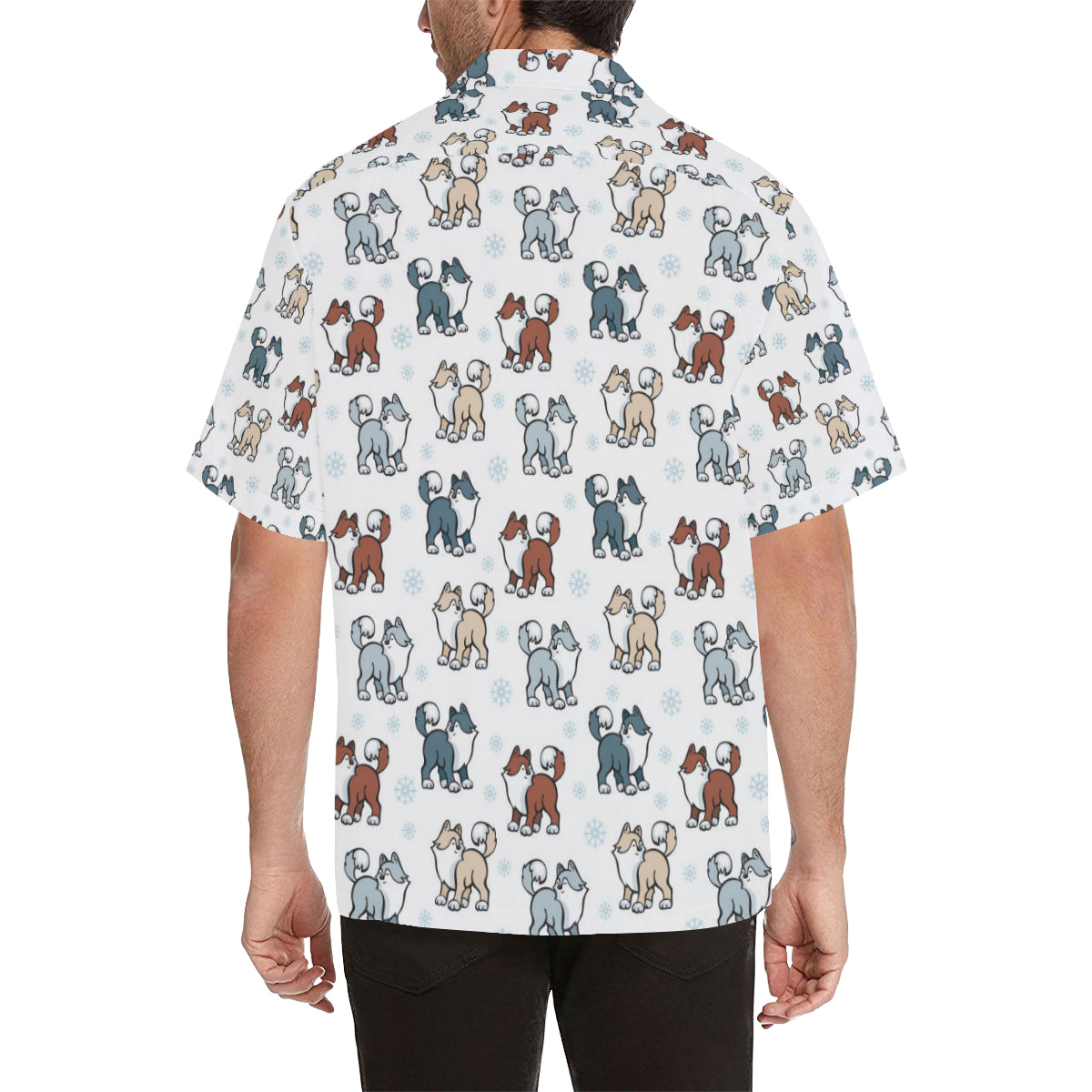 Alaskan Malamute Pattern Print Design 02 Men's Hawaiian Shirt Custom handmade Printing and Sewing, Limited Edition Not Available in Store.
