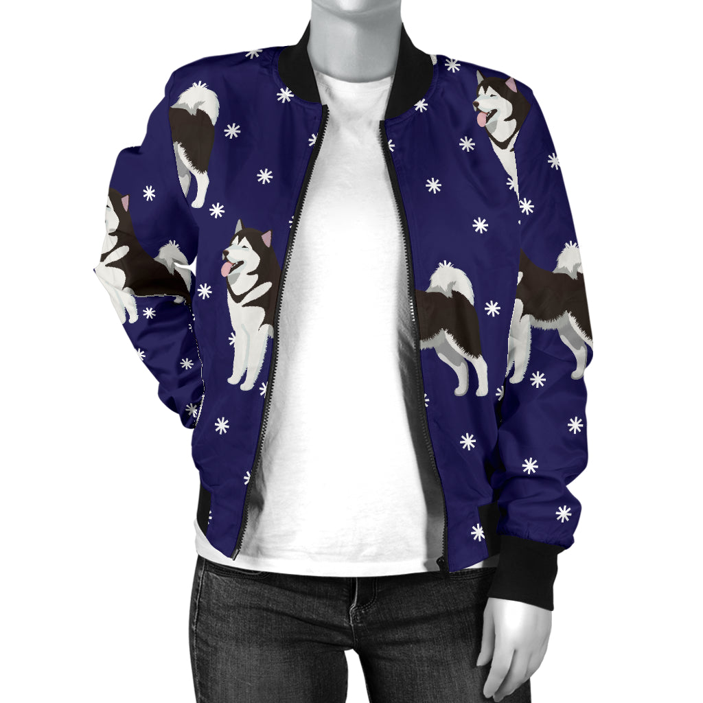 Alaskan Malamute Pattern Print Design 04 Women's Bomber Jacket