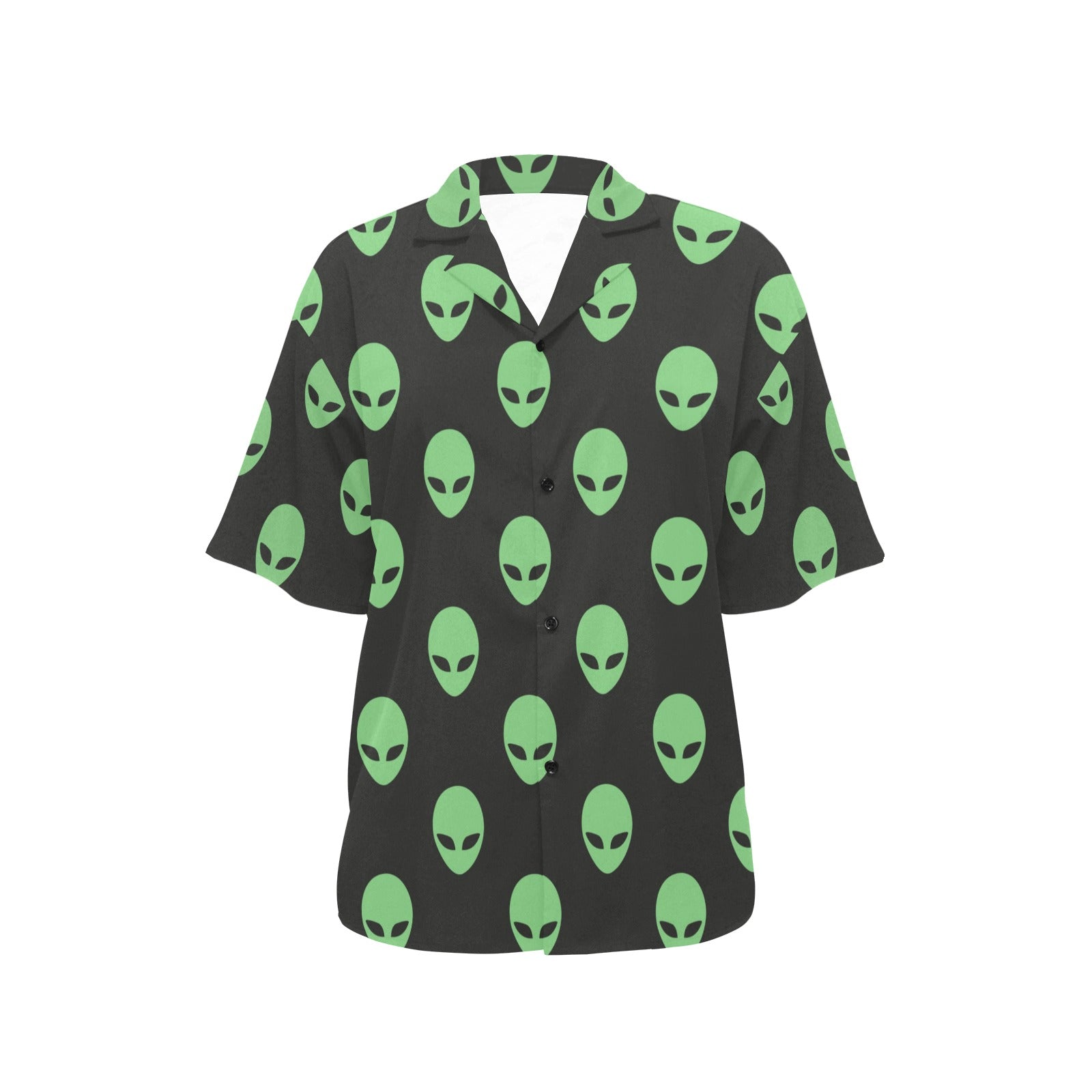 Alien Green Neon Pattern Print Design 01 Women's Hawaiian Shirt