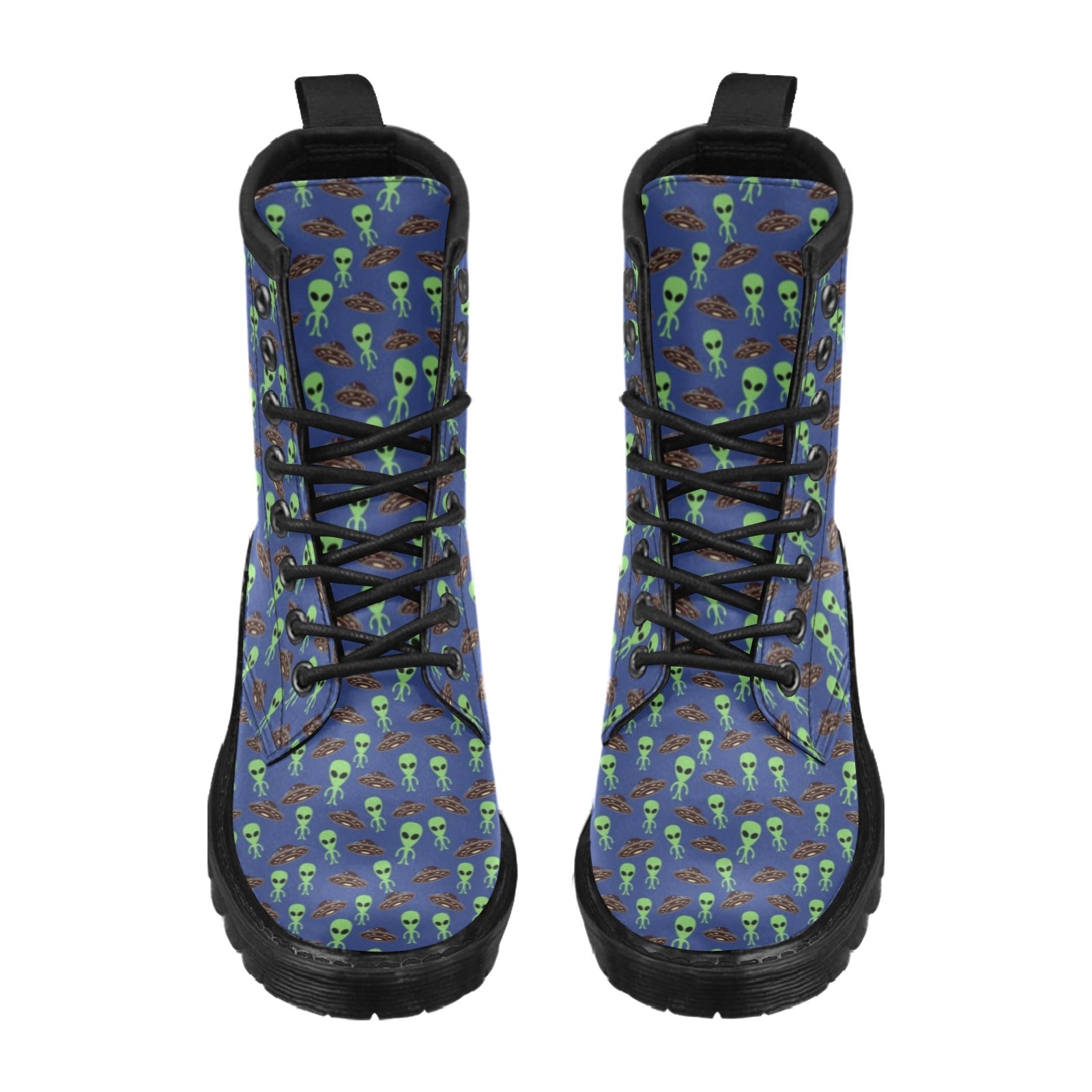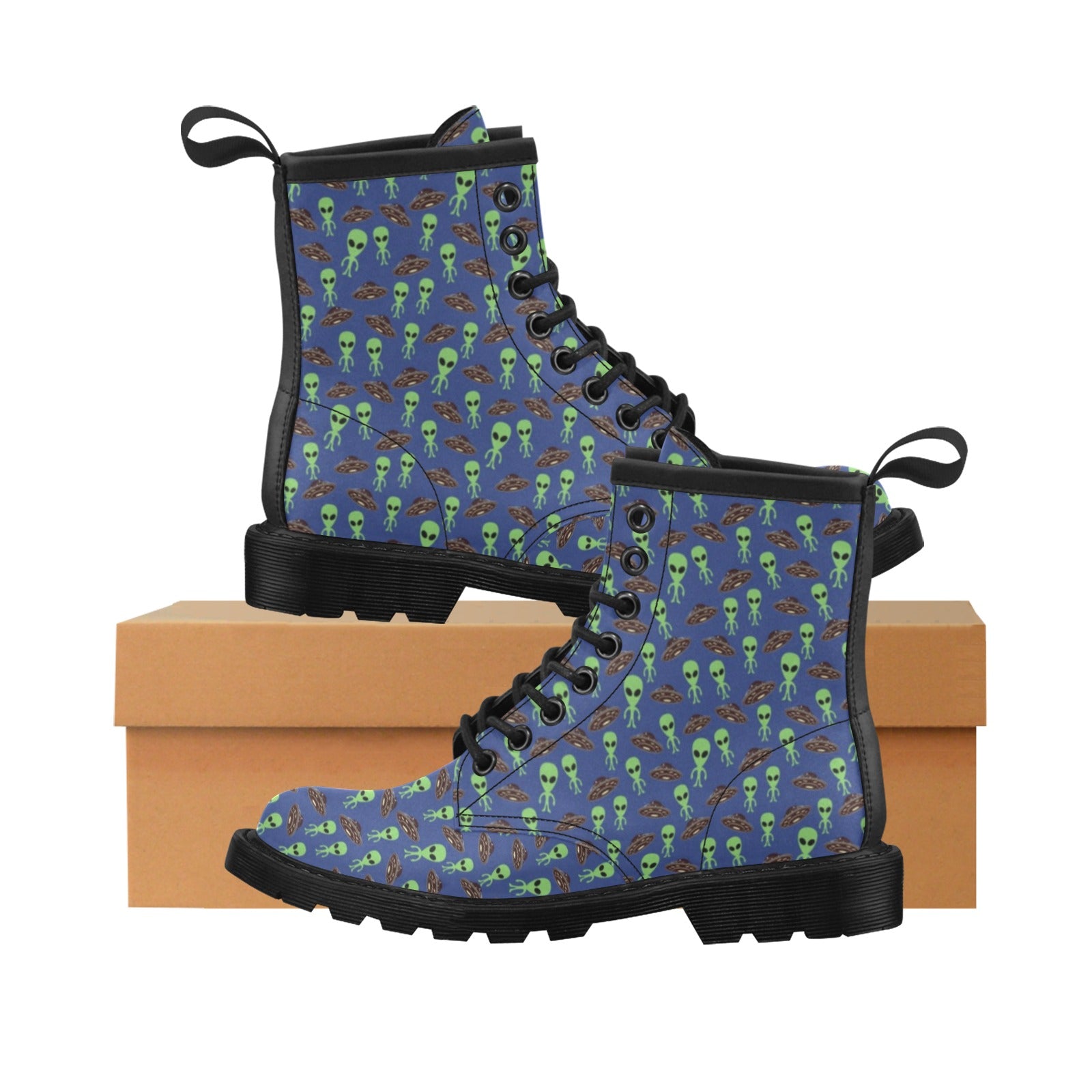 Alien Green UFO Pattern Women's Boots Made to Order Item. It is hand-cut and sewn just for your order! This process starts as soon as your order is placed and may have a processing time of 5-9 business days before it ships.