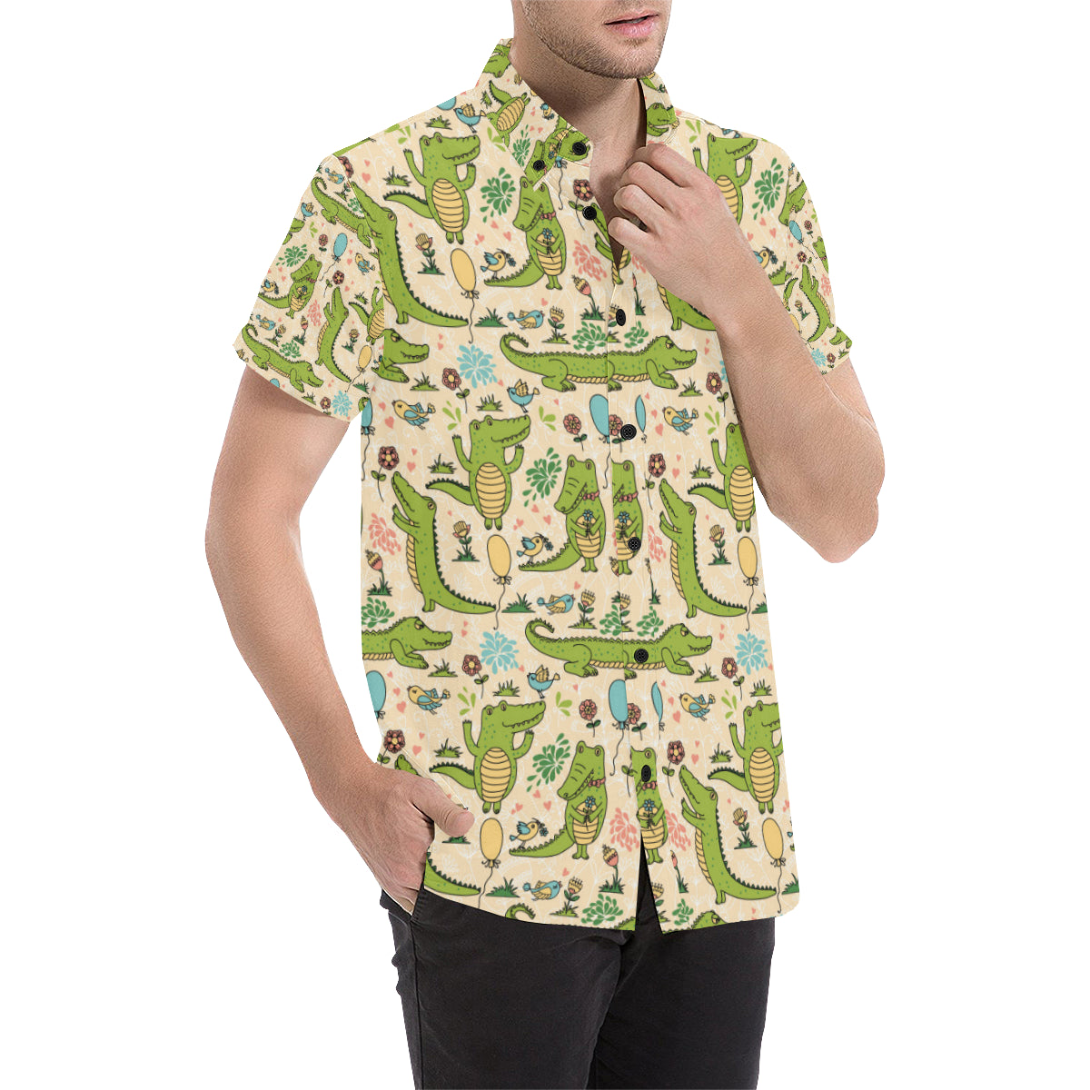 Alligator Pattern Print Design 01 Men's Short Sleeve Button Up Shirt Made to Order Item. It is hand-cut and sewn just for your order! This process starts as soon as your order is placed and may have a processing time of 5-9 business days before it ships.