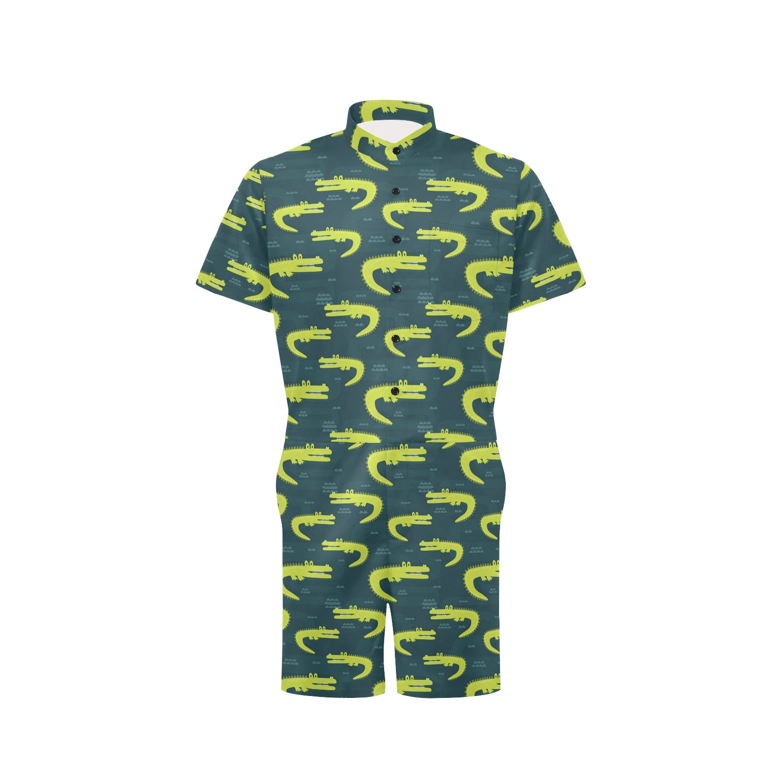 Alligator Pattern Print Design 03 Men's Romper Made to Order Item. It is hand-cut and sewn just for your order! This process starts as soon as your order is placed and may have a processing time of 5-9 business days before it ships.