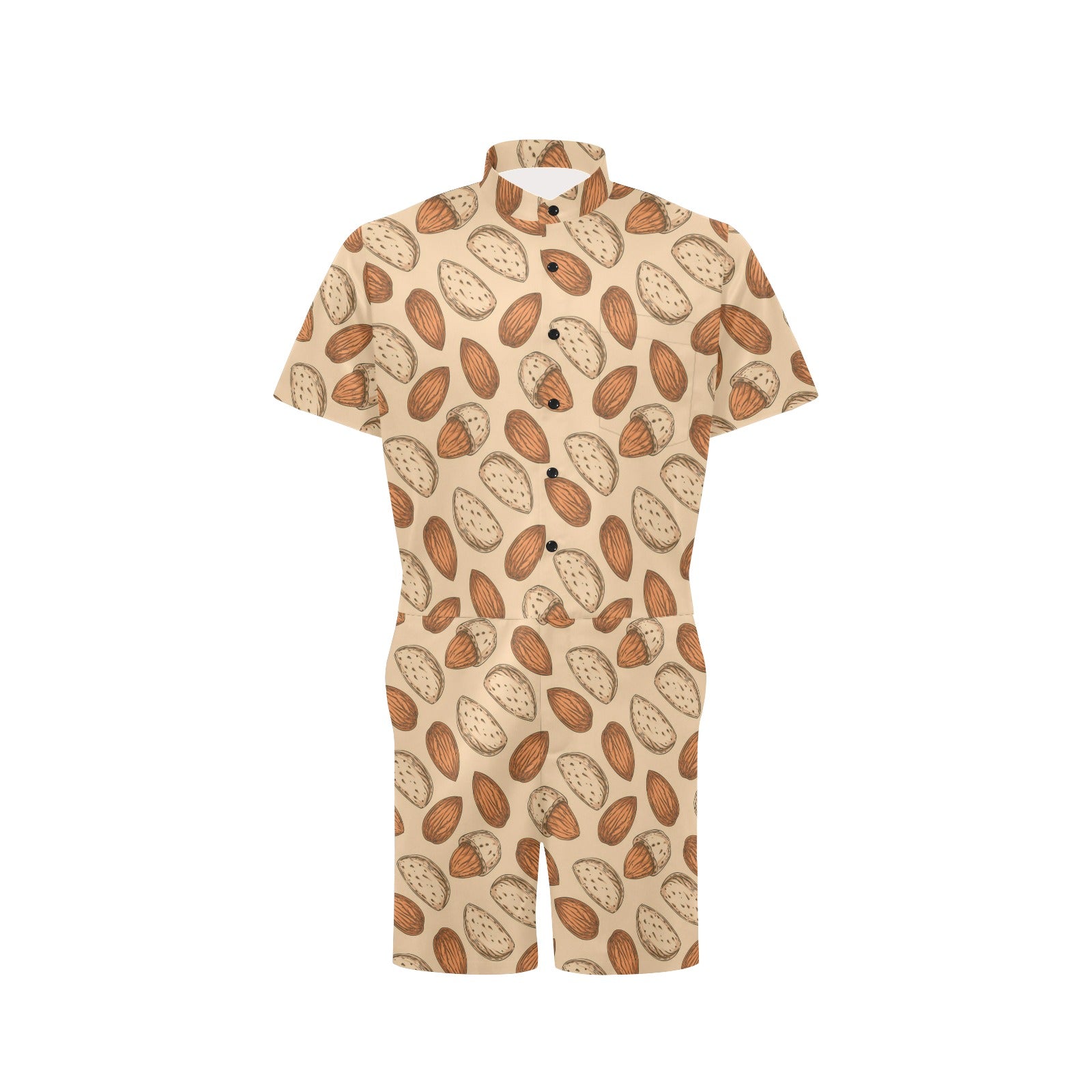 Almond Pattern Print Design 04 Men's Romper Made to Order Item. It is hand-cut and sewn just for your order! This process starts as soon as your order is placed and may have a processing time of 5-9 business days before it ships.