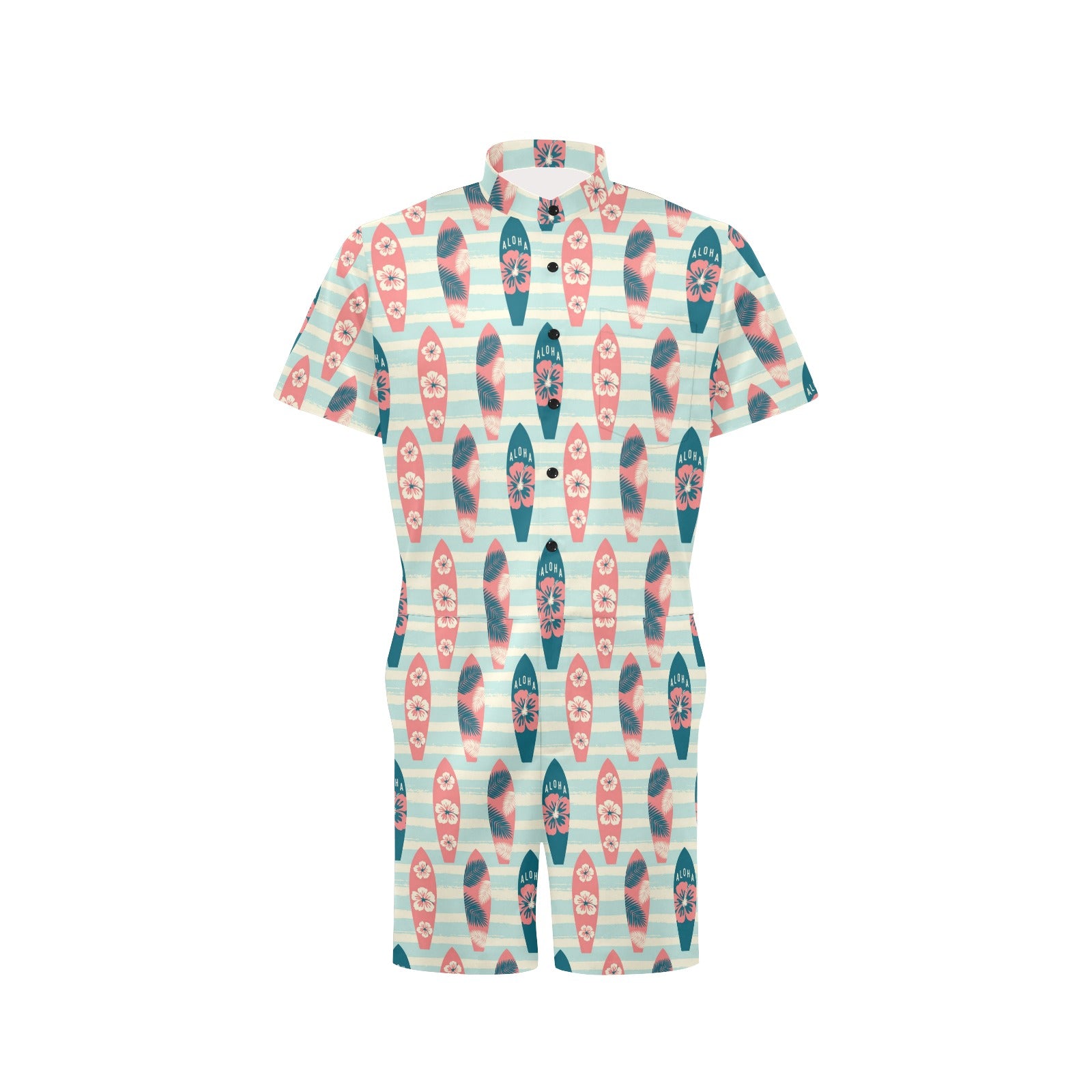 Aloha Hawaii Surfboard Pattern Print Design 02 Men's Romper Made to Order Item. It is hand-cut and sewn just for your order! This process starts as soon as your order is placed and may have a processing time of 5-9 business days before it ships.