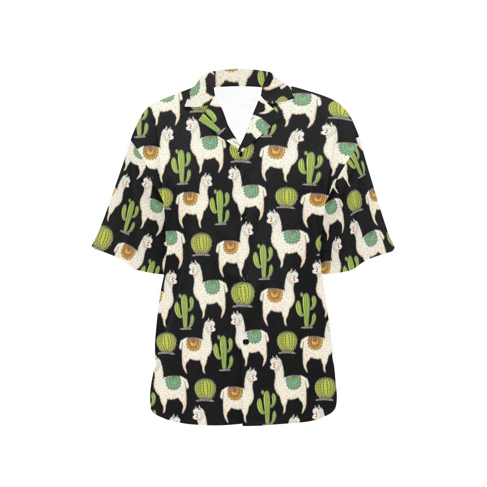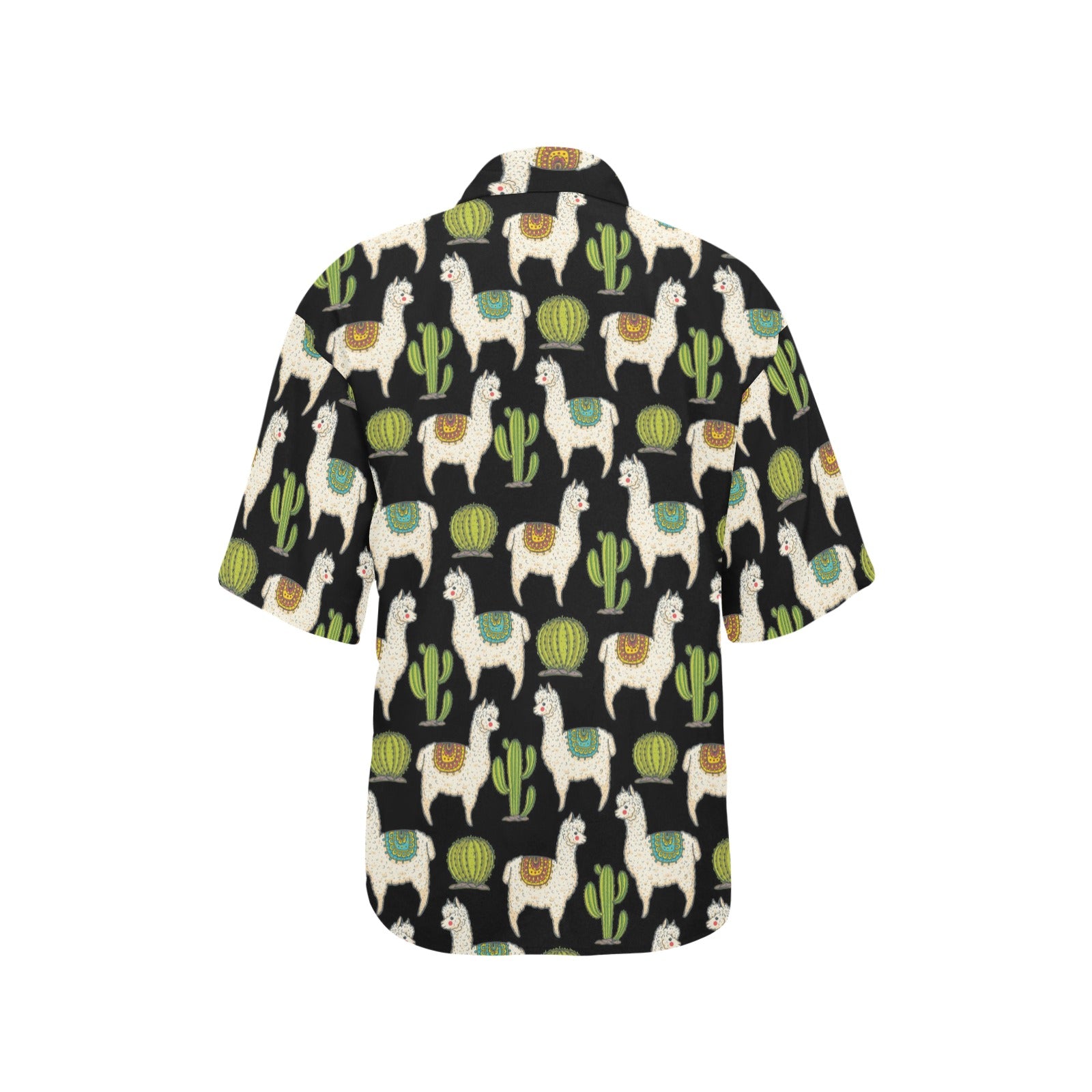 Alpaca Cactus Pattern Print Design 07 Women's Hawaiian Shirt