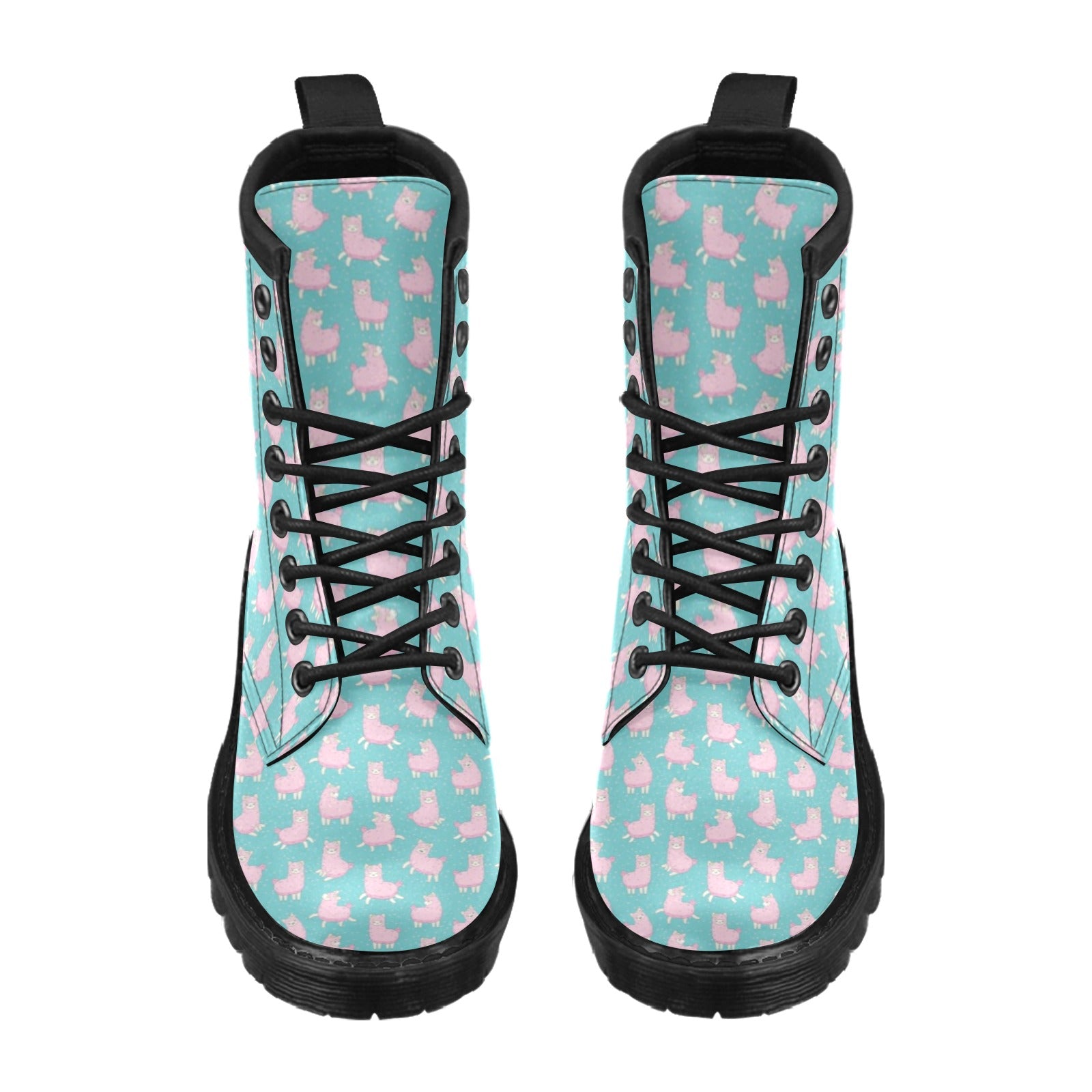 Alpaca Cartoon Design Themed Print Women's Boots Made to Order Item. It is hand-cut and sewn just for your order! This process starts as soon as your order is placed and may have a processing time of 5-9 business days before it ships.