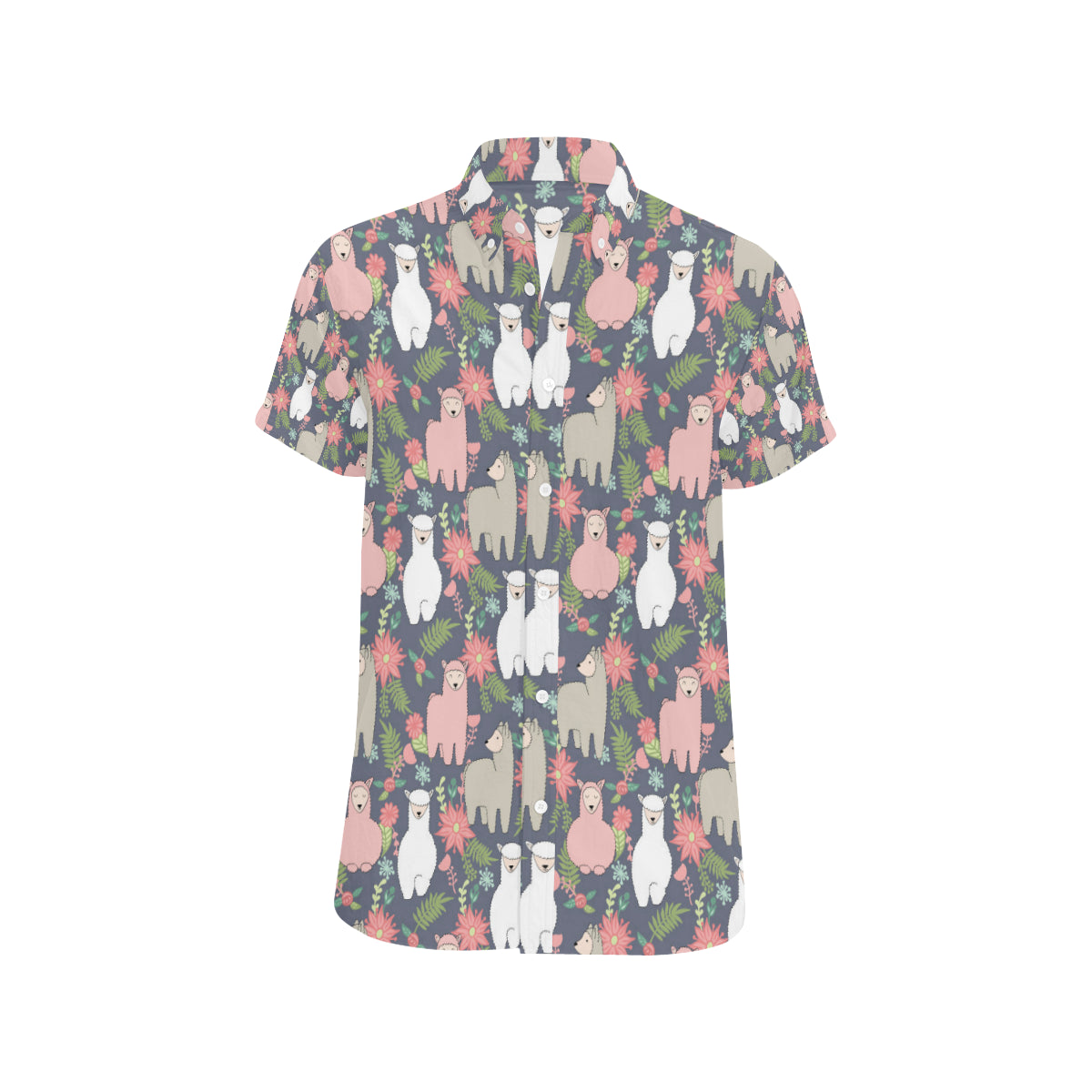 Alpaca Pattern Print Design 03 Men's Short Sleeve Button Up Shirt Made to Order Item. It is hand-cut and sewn just for your order! This process starts as soon as your order is placed and may have a processing time of 5-9 business days before it ships.