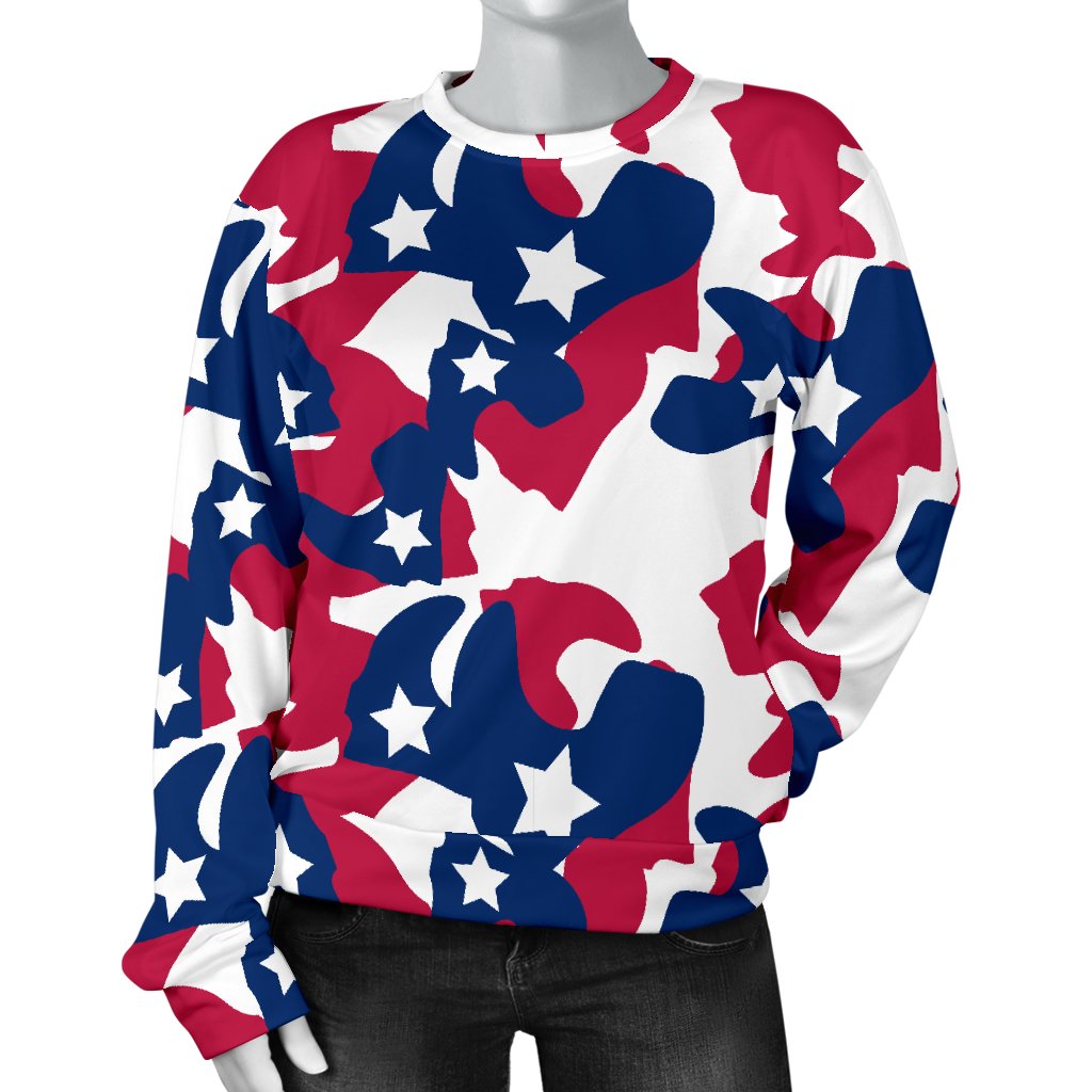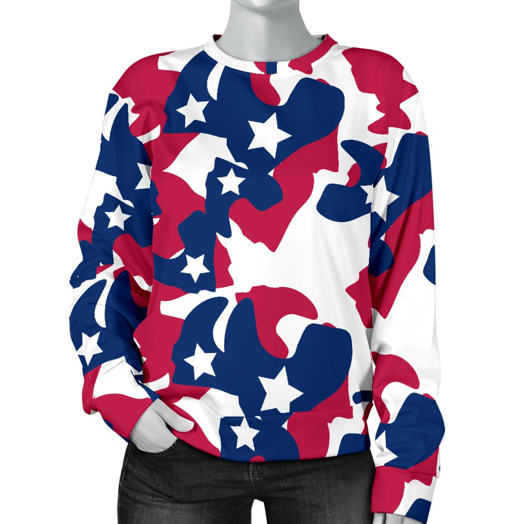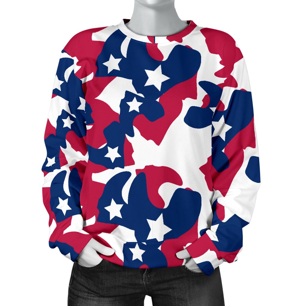 American Flag Camo Print Women Crewneck Sweatshirt