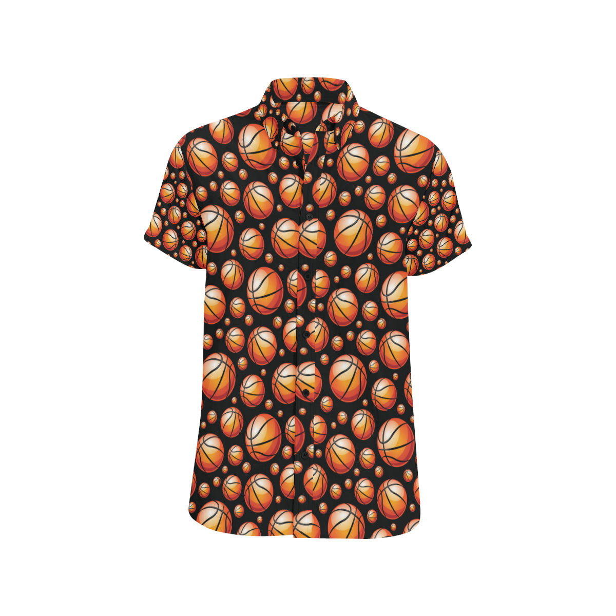 Basketball Black Background Pattern Men's Short Sleeve Button Up Shirt Made to Order Item. It is hand-cut and sewn just for your order! This process starts as soon as your order is placed and may have a processing time of 5-9 business days before it ships.