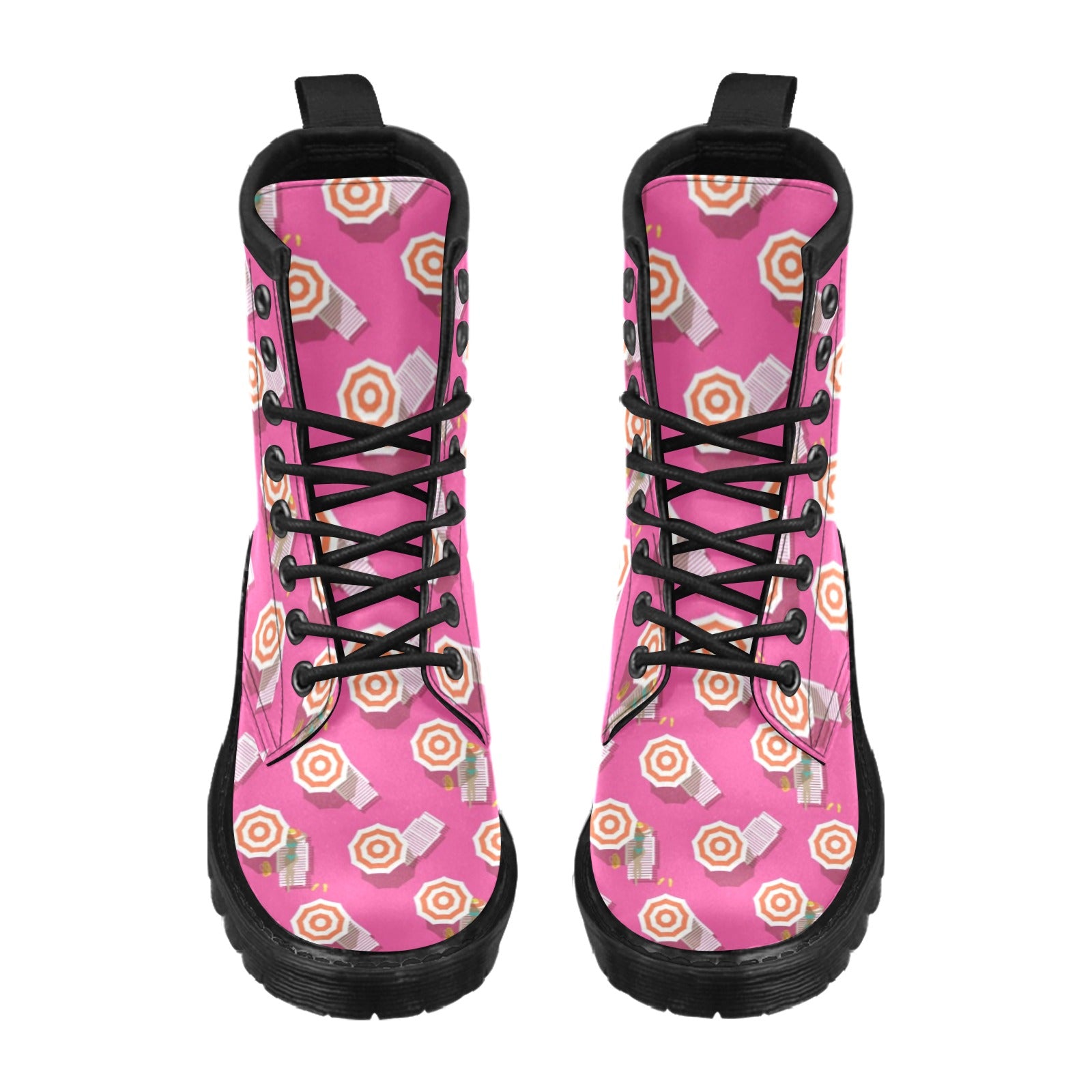 Beach Top View Umbrella Theme Women's Boots Made to Order Item. It is hand-cut and sewn just for your order! This process starts as soon as your order is placed and may have a processing time of 5-9 business days before it ships.
