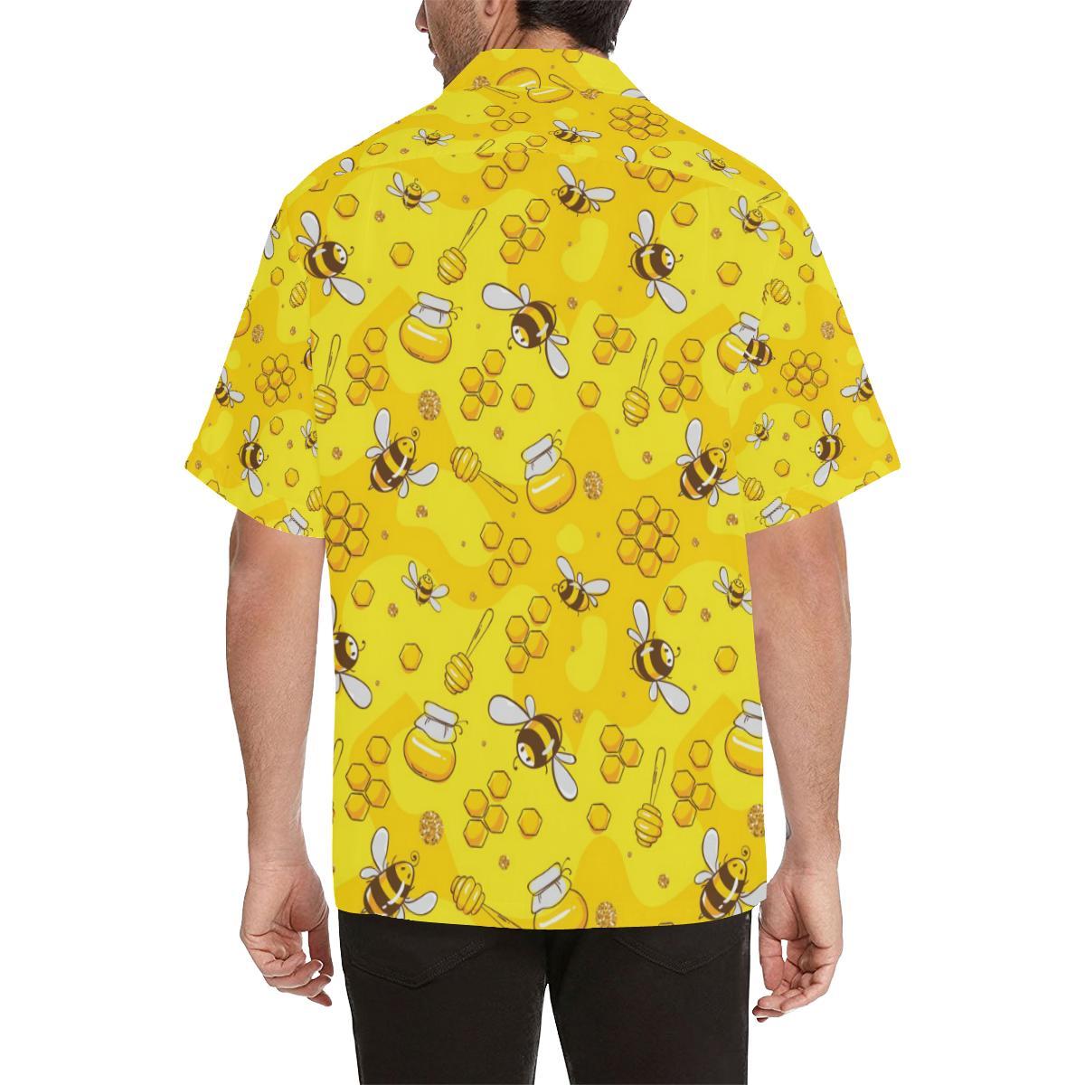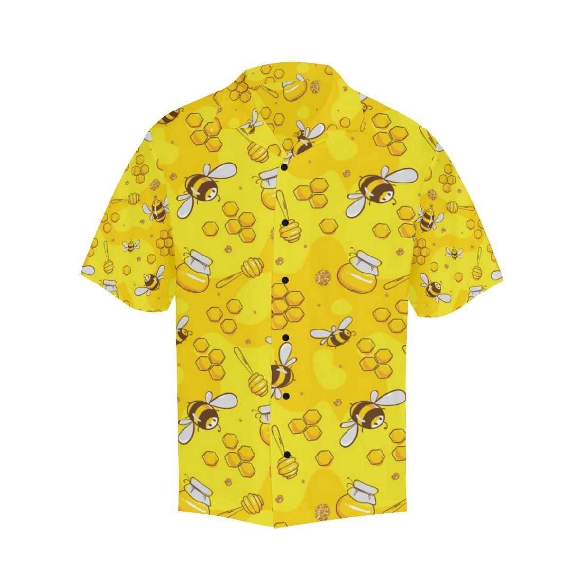 Bee Pattern Print Design BEE01 Men's Hawaiian Shirt Custom handmade Printing and Sewing, Limited Edition Not Available in Store.