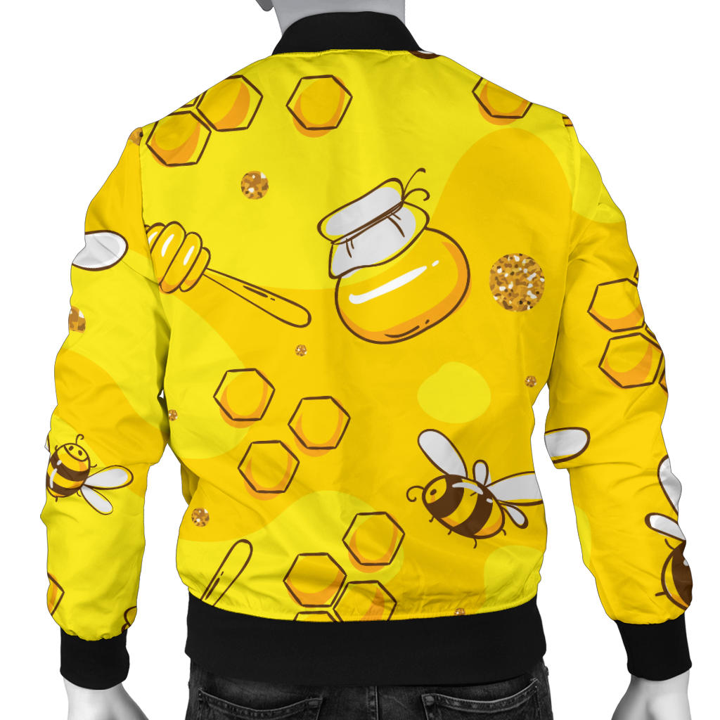 Bee Pattern Print Design BEE01 Men Bomber Jacket