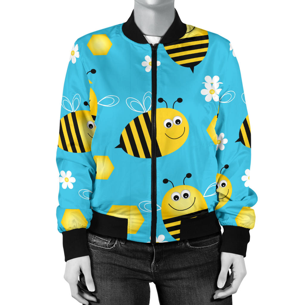 Bee Pattern Print Design BEE06 Women Bomber Jacket