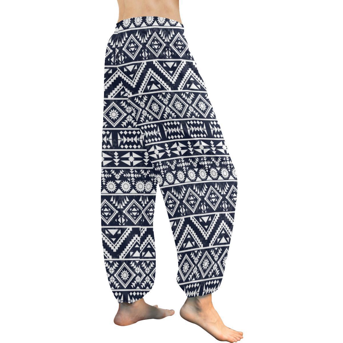 Blue White Tribal Aztec Harem Pants