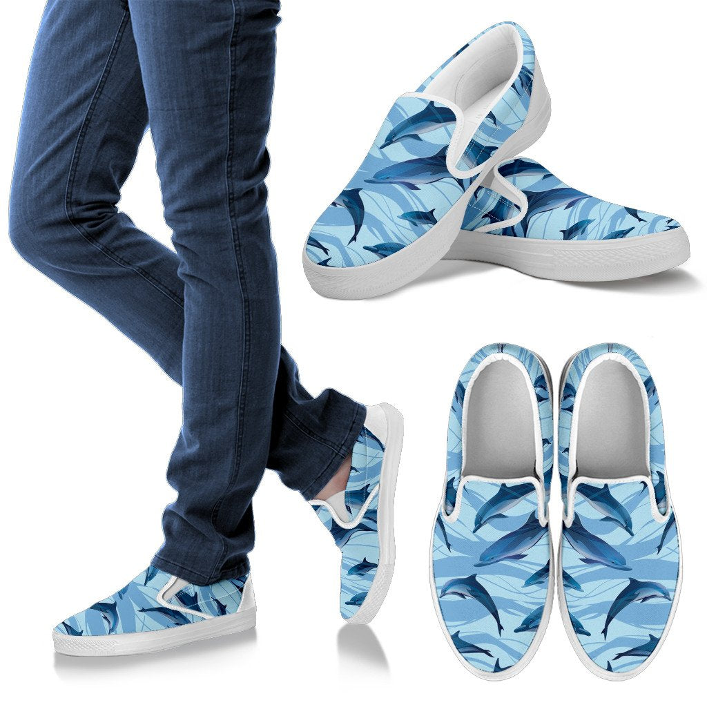 Blue Dolphin Women Canvas Slip On Shoes, This is a Unique Design and Made to Order Item. Hand printed, pressed and sewn with love in our factory just for your order!