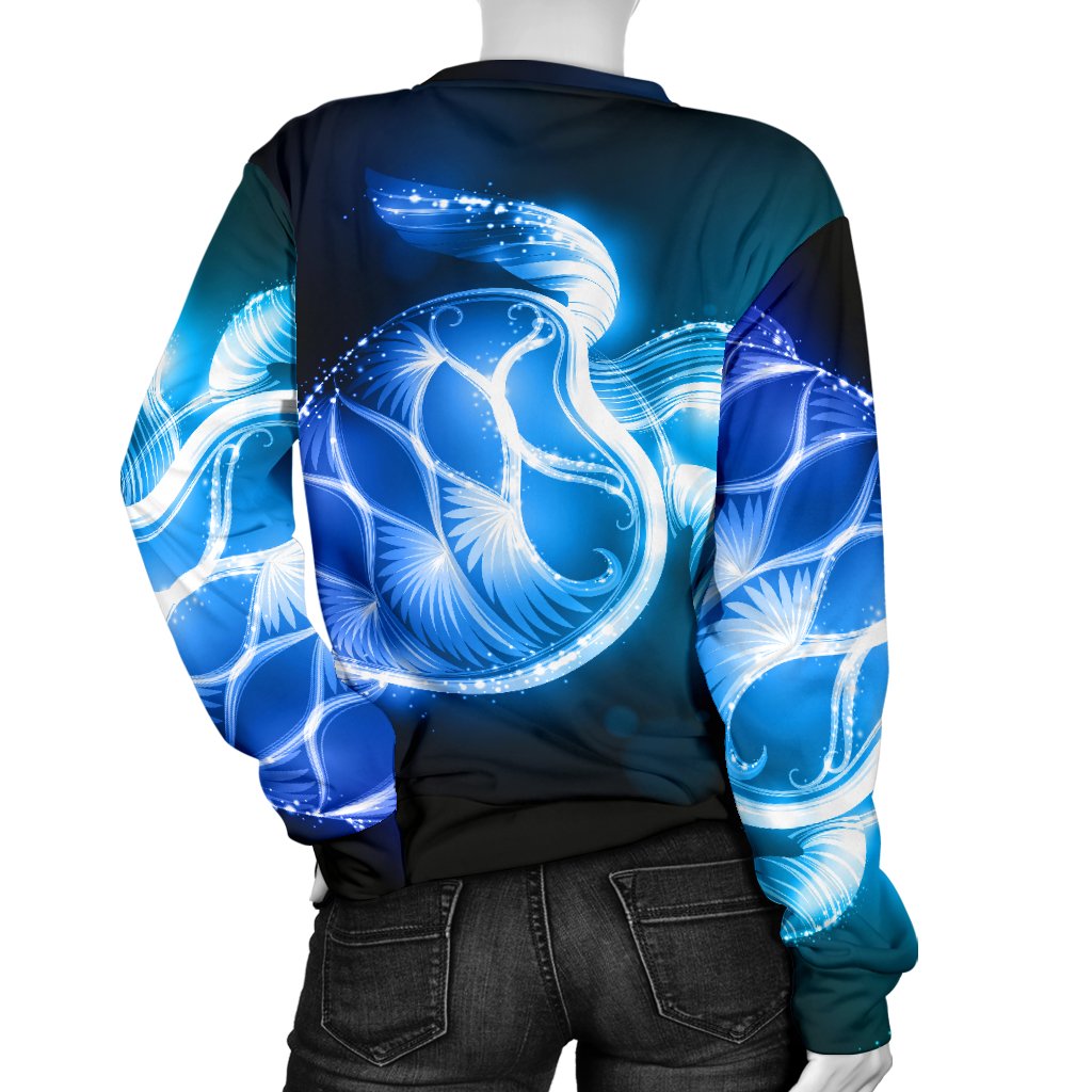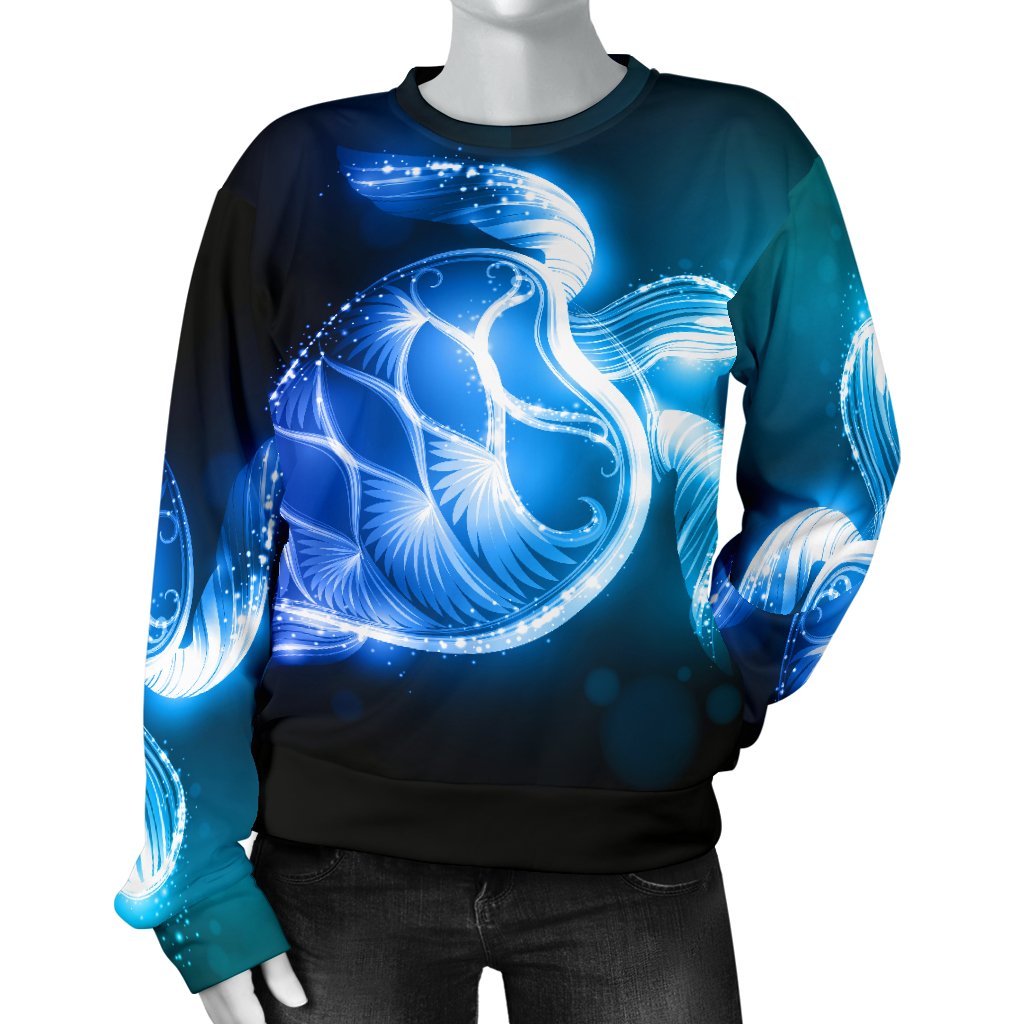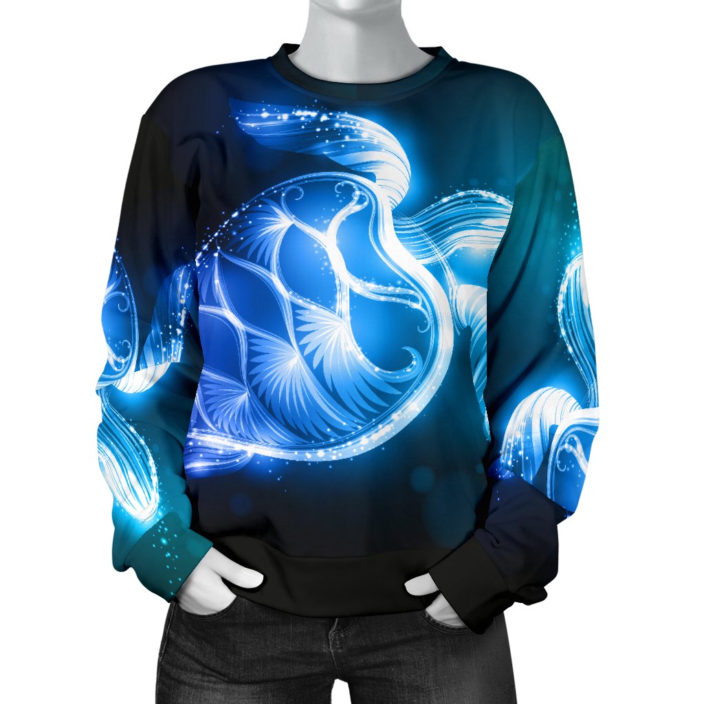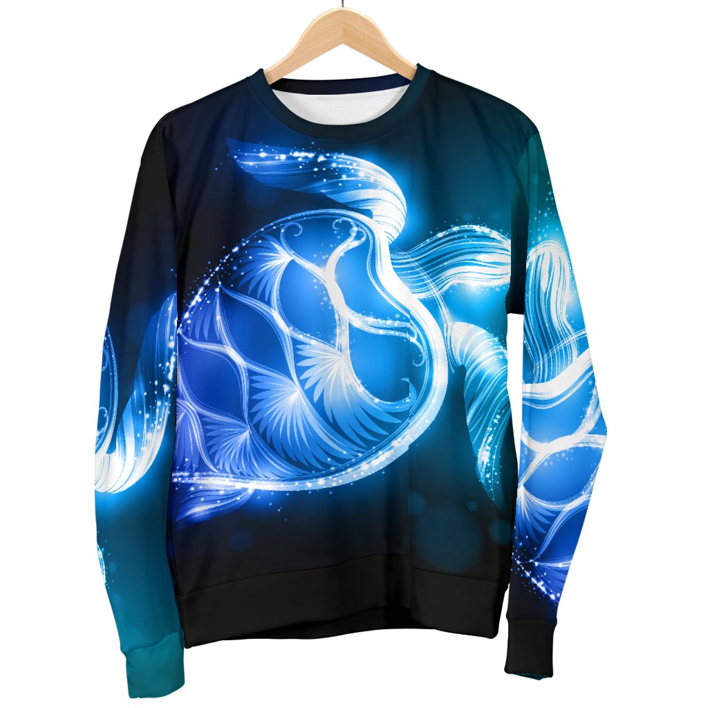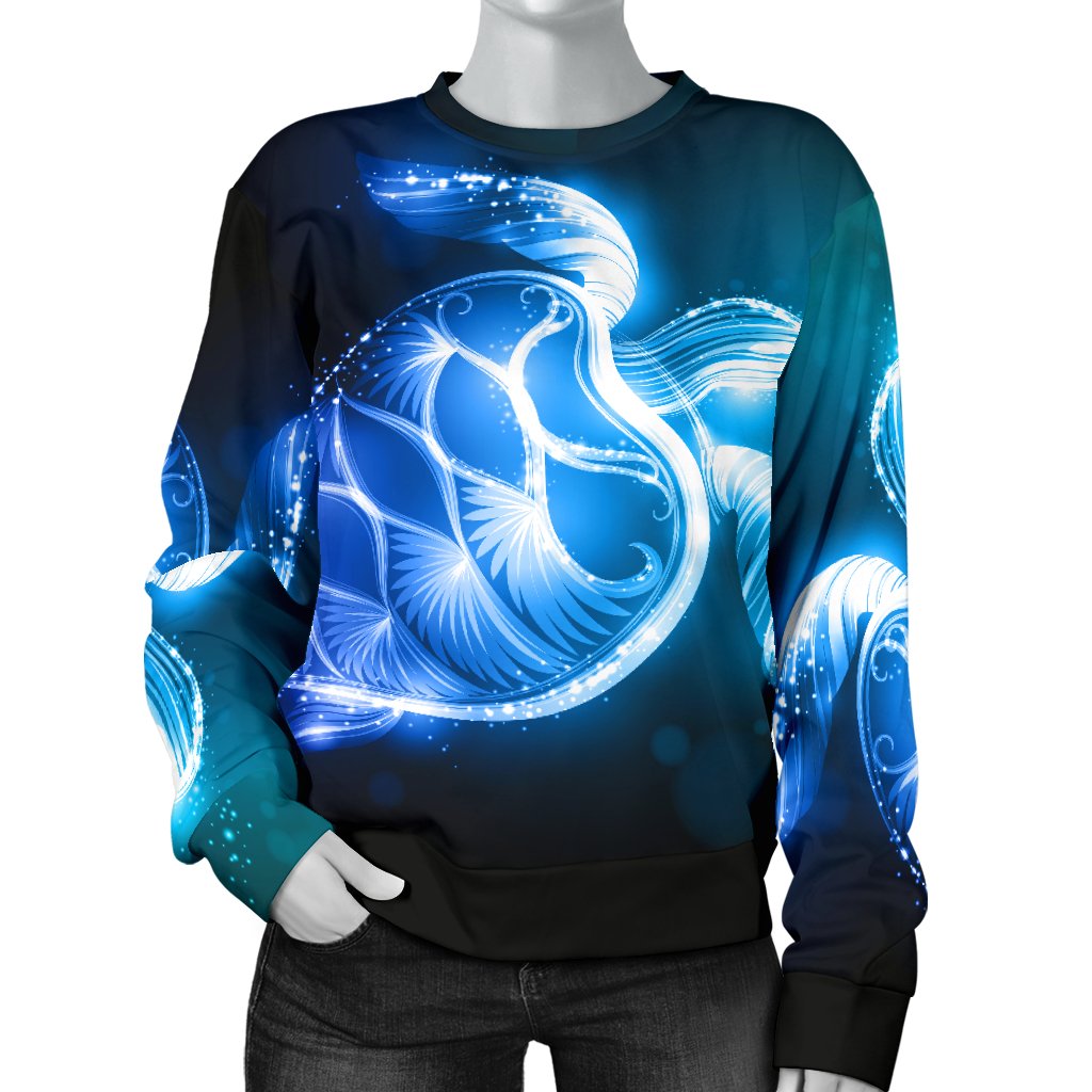 Blue Neon Sea Turtle Print Women Crewneck Sweatshirt