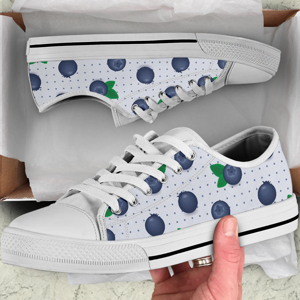 Blueberry Pattern Print Design BB02 White Bottom Low Top Shoes