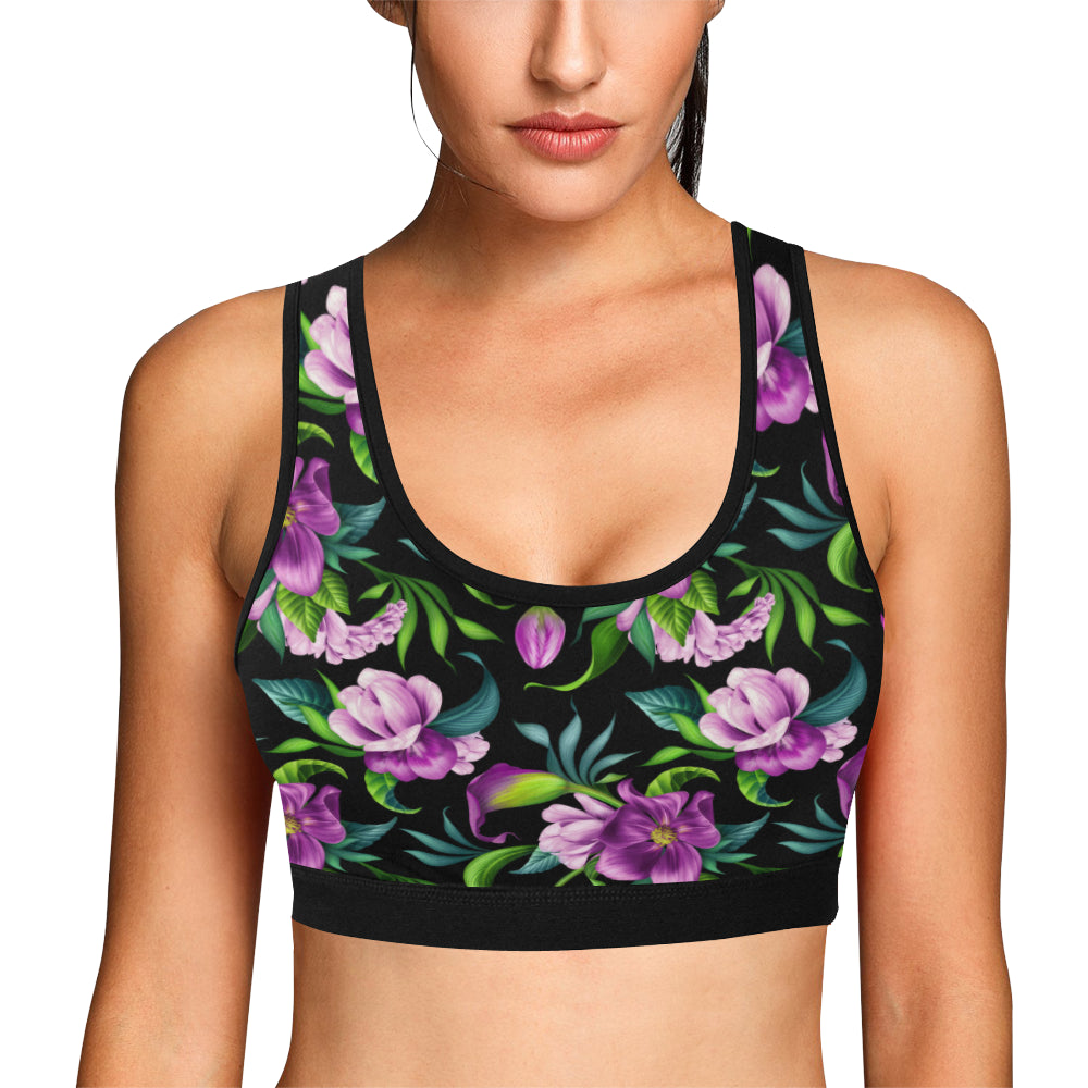Bright Purple Floral Pattern Sports Bra