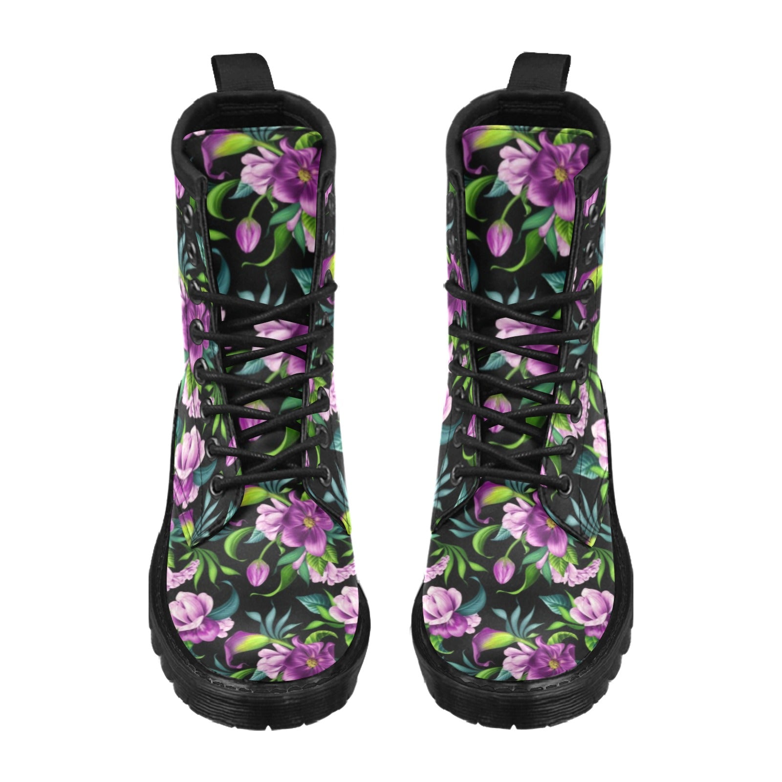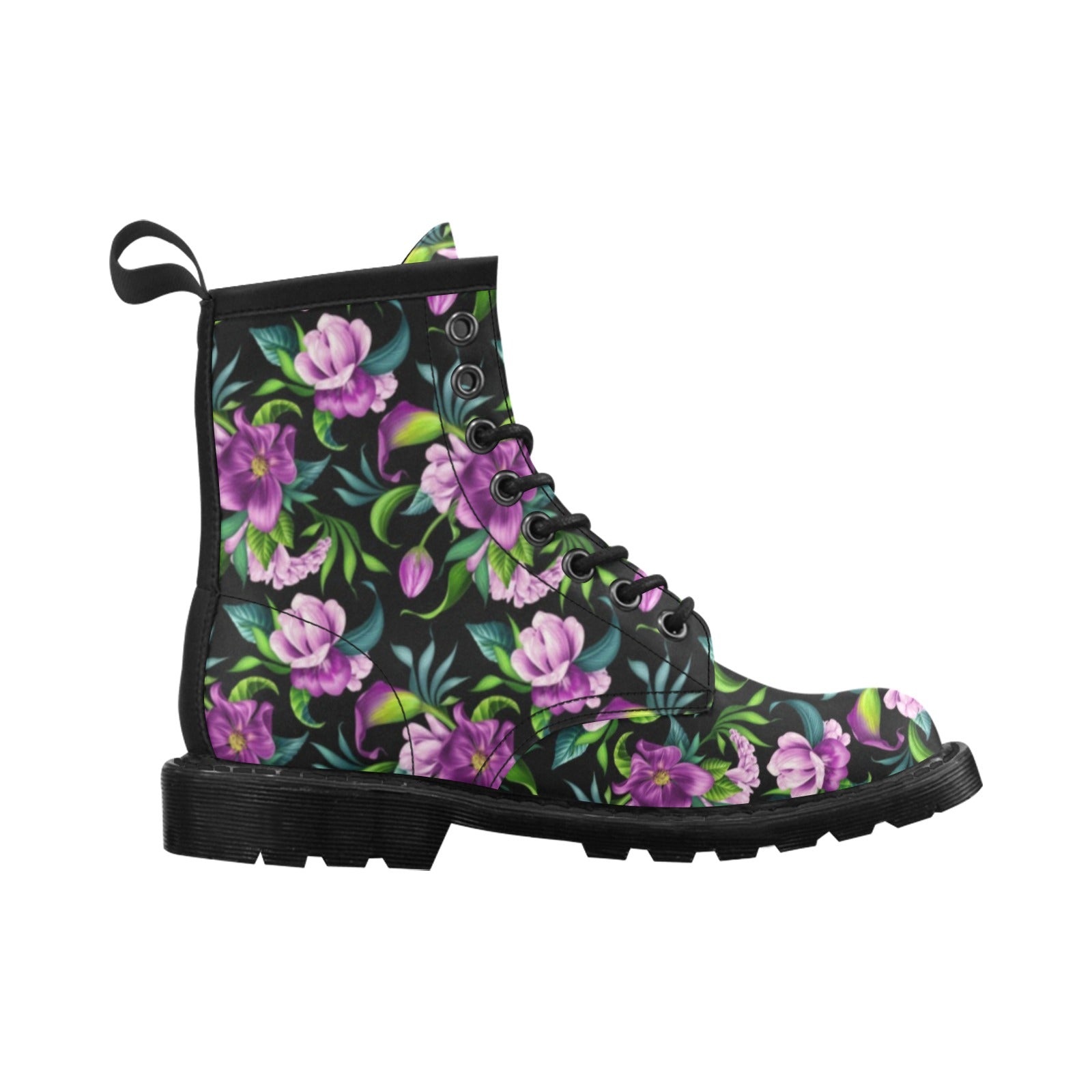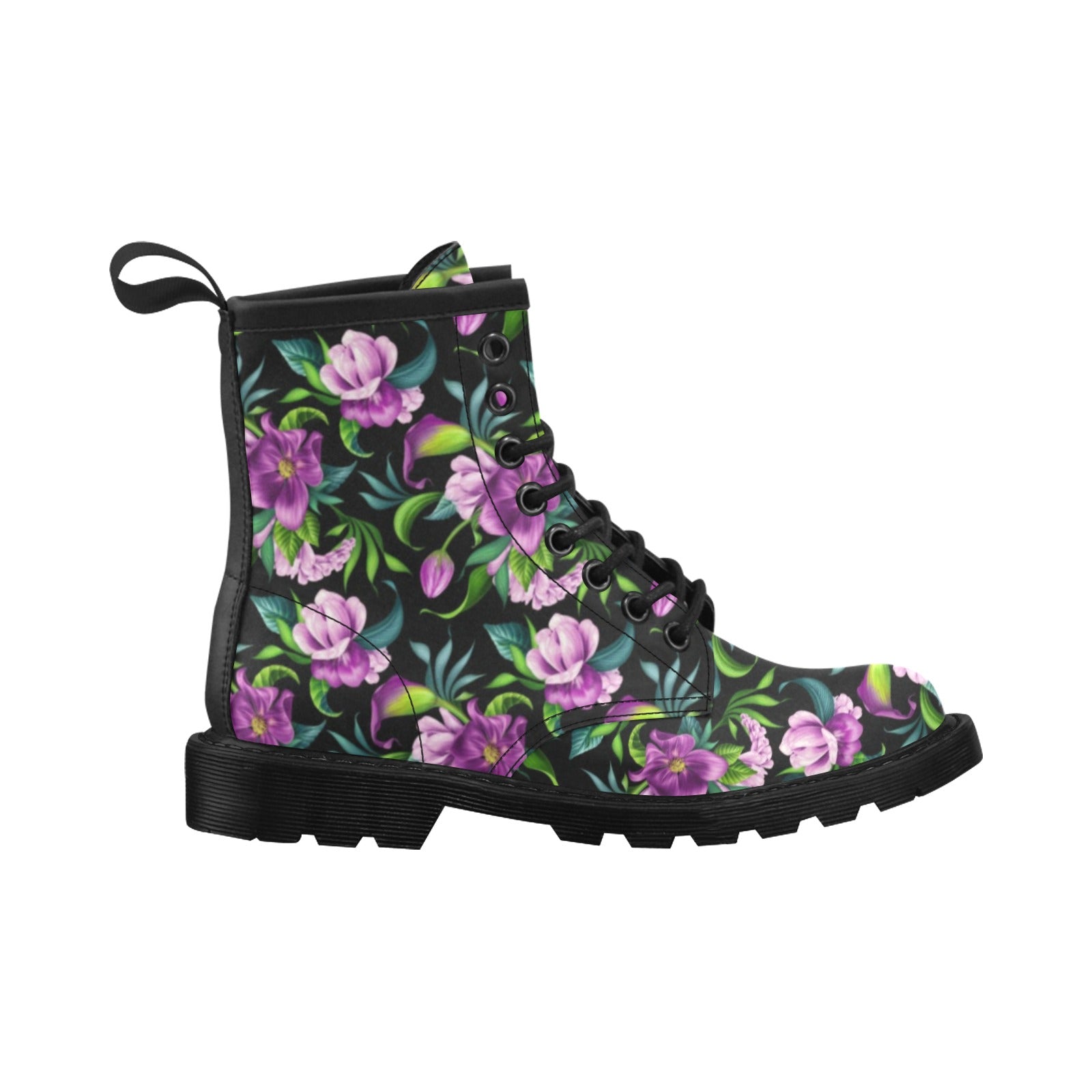 Bright Purple Floral Pattern Women's Boots Made to Order Item. It is hand-cut and sewn just for your order! This process starts as soon as your order is placed and may have a processing time of 5-9 business days before it ships.