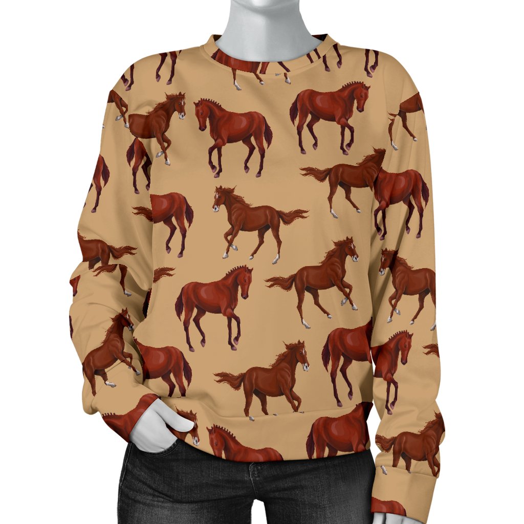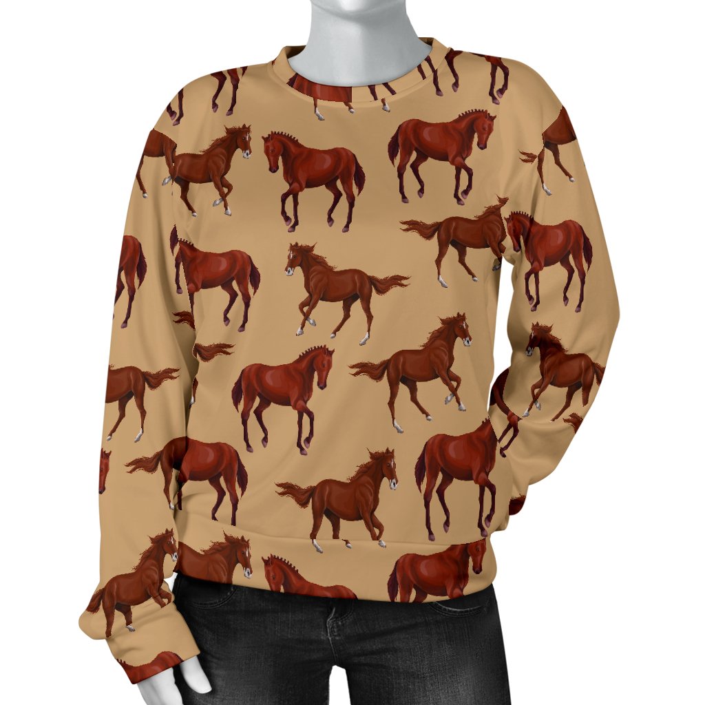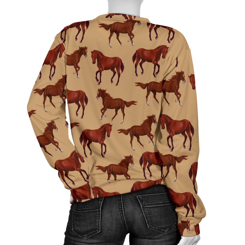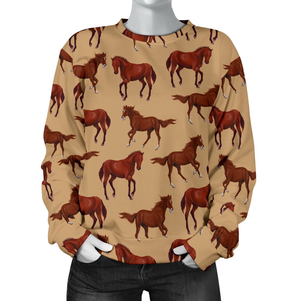 Brown Horse Print Pattern Women Crewneck Sweatshirt