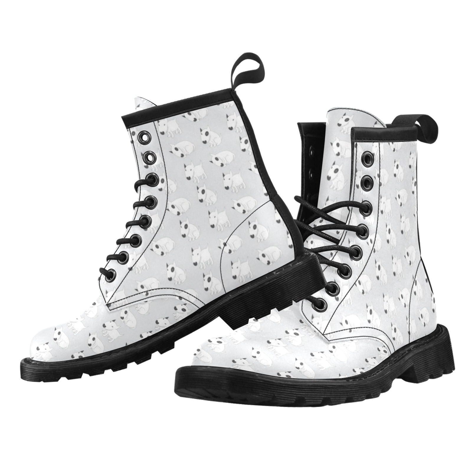 Bull Terrier hand draw Print Pattern Women's Boots Made to Order Item. It is hand-cut and sewn just for your order! This process starts as soon as your order is placed and may have a processing time of 5-9 business days before it ships.