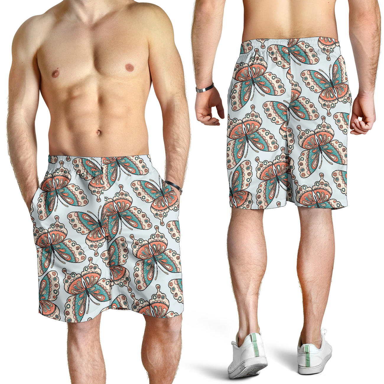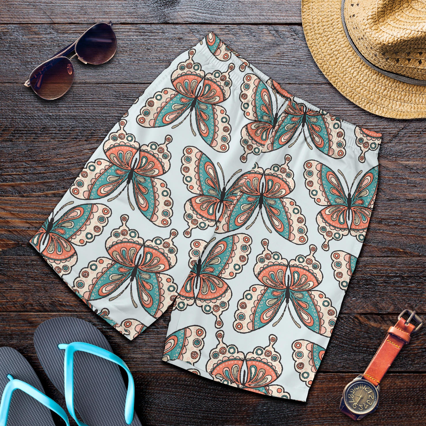 Butterfly Pattern Mens Shorts Made to Order Item. It is hand-cut and sewn just for your order! This process starts as soon as your order is placed and may have a processing time of 5-9 business days before it ships.