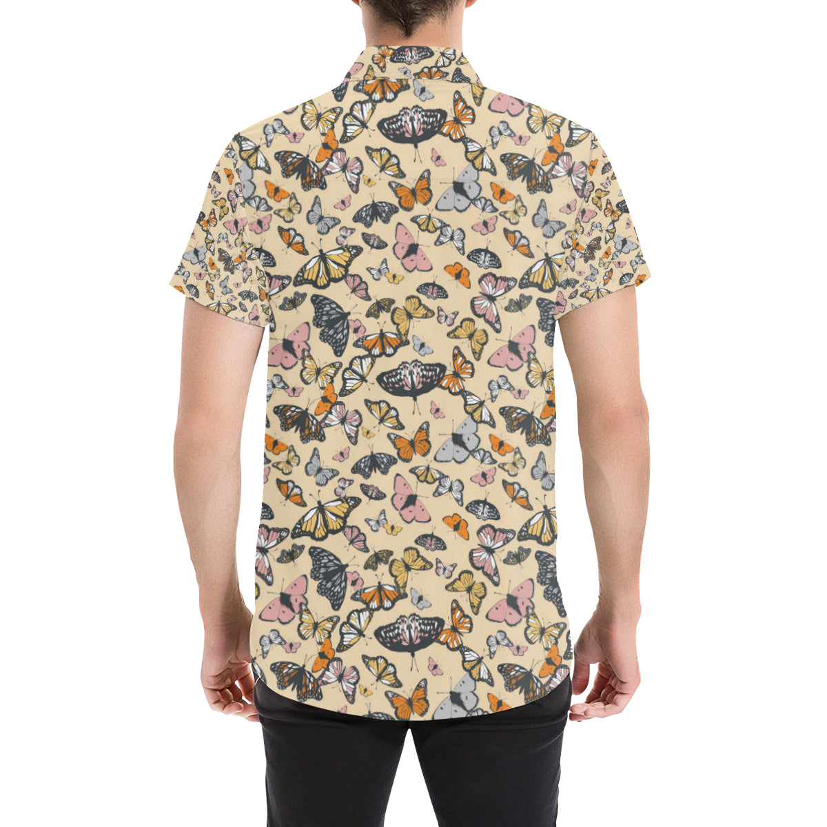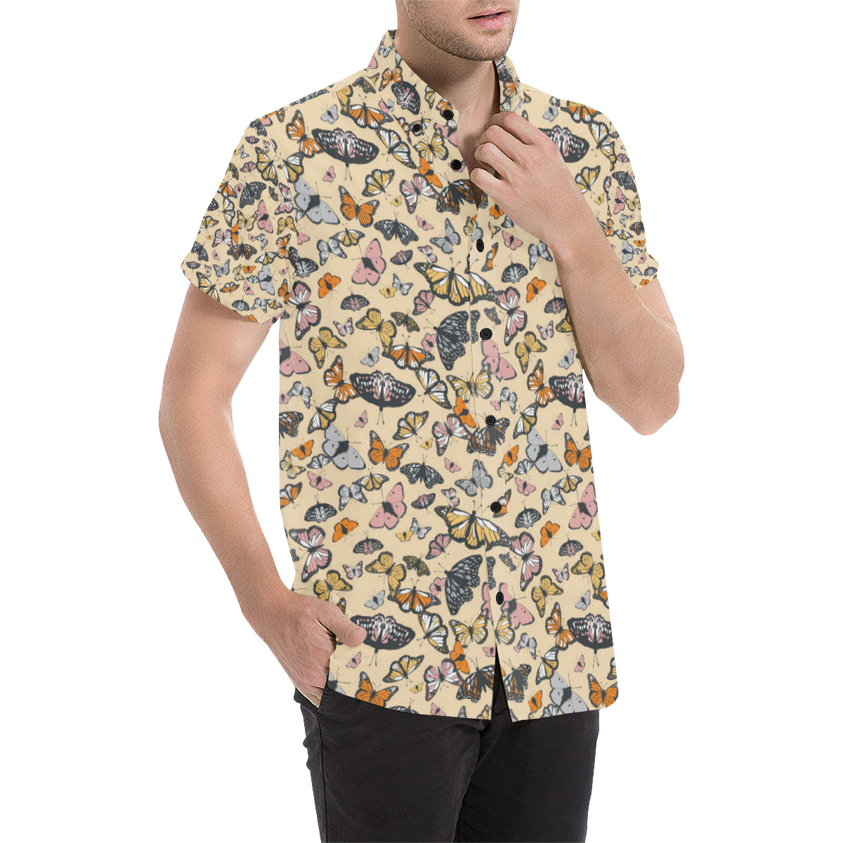 Butterfly Pattern Print Design 04 Men's Short Sleeve Button Up Shirt Made to Order Item. It is hand-cut and sewn just for your order! This process starts as soon as your order is placed and may have a processing time of 5-9 business days before it ships.