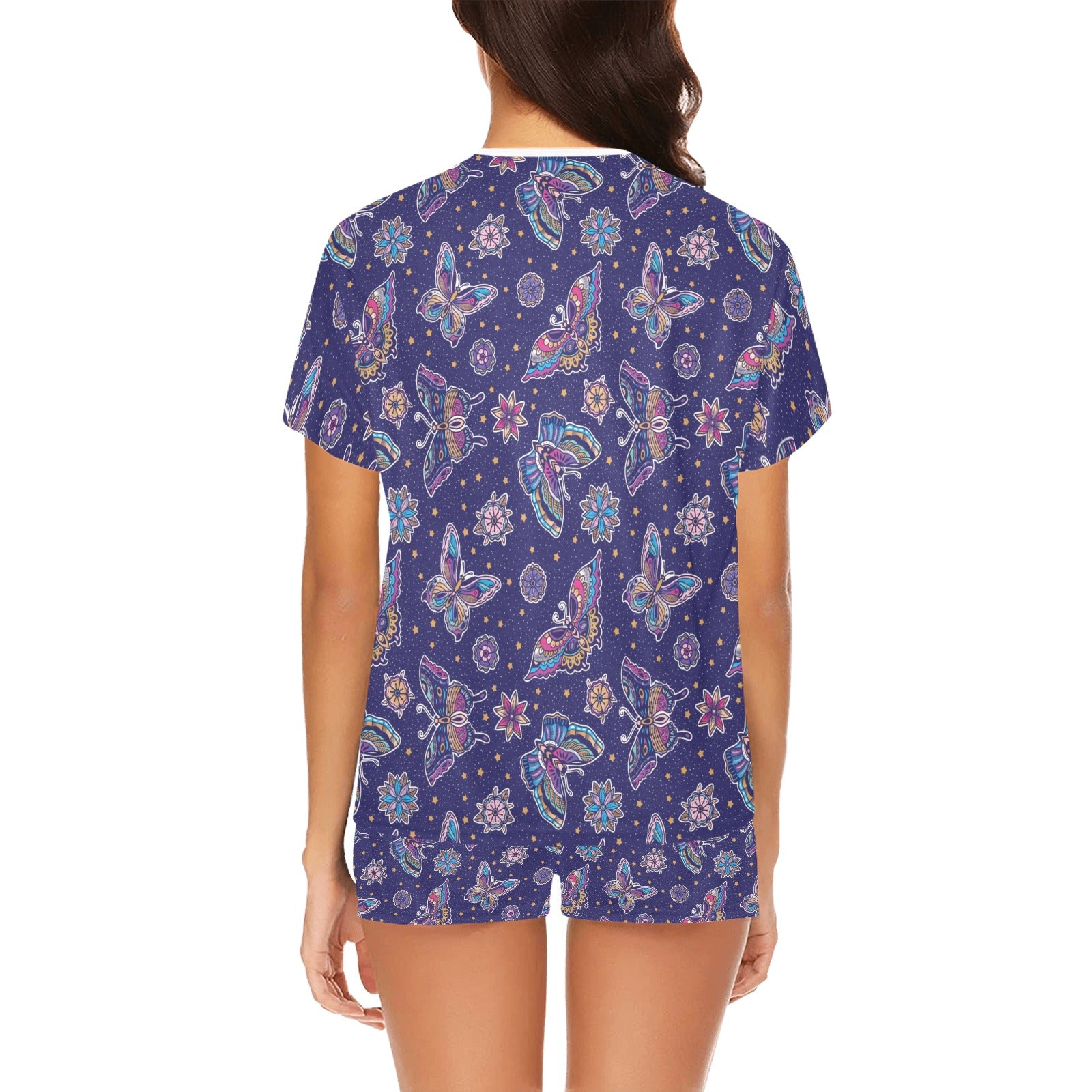 Butterfly Print Design LKS303 Women's Short Pajama Set