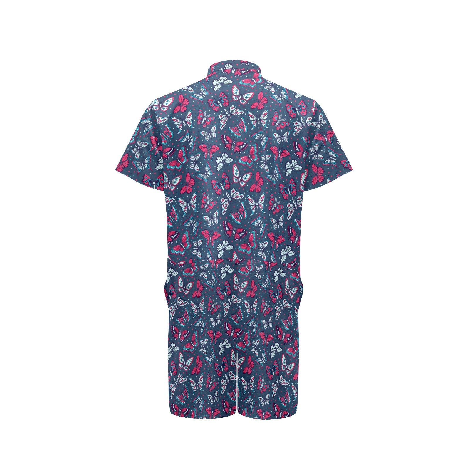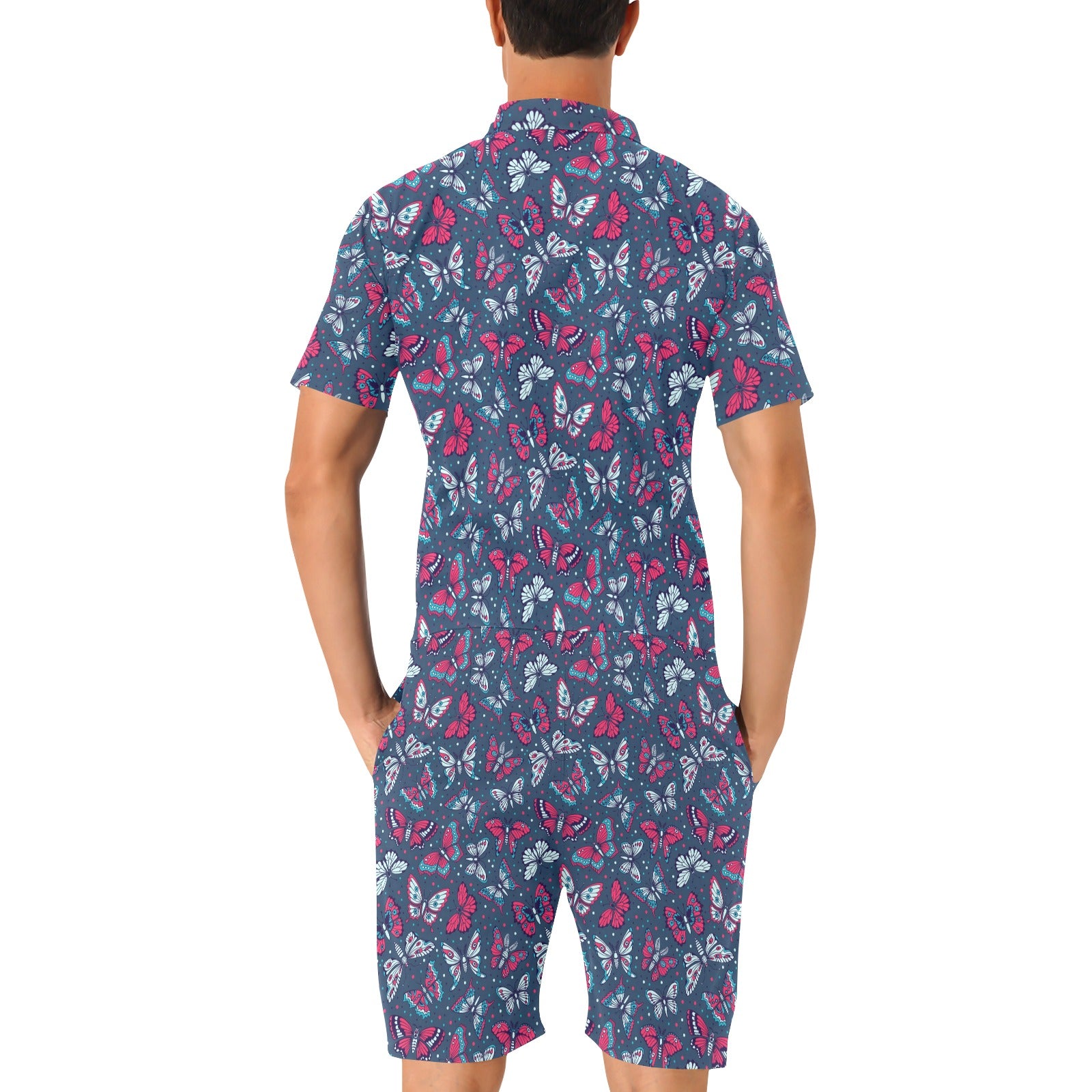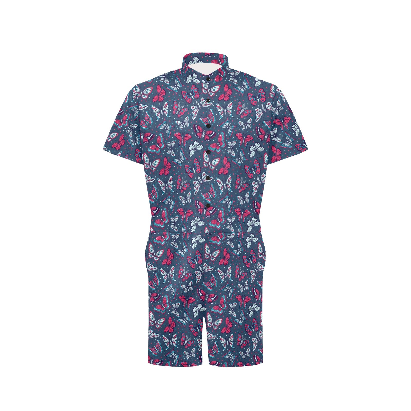 Butterfly Red Deep Blue Print Pattern Men's Romper