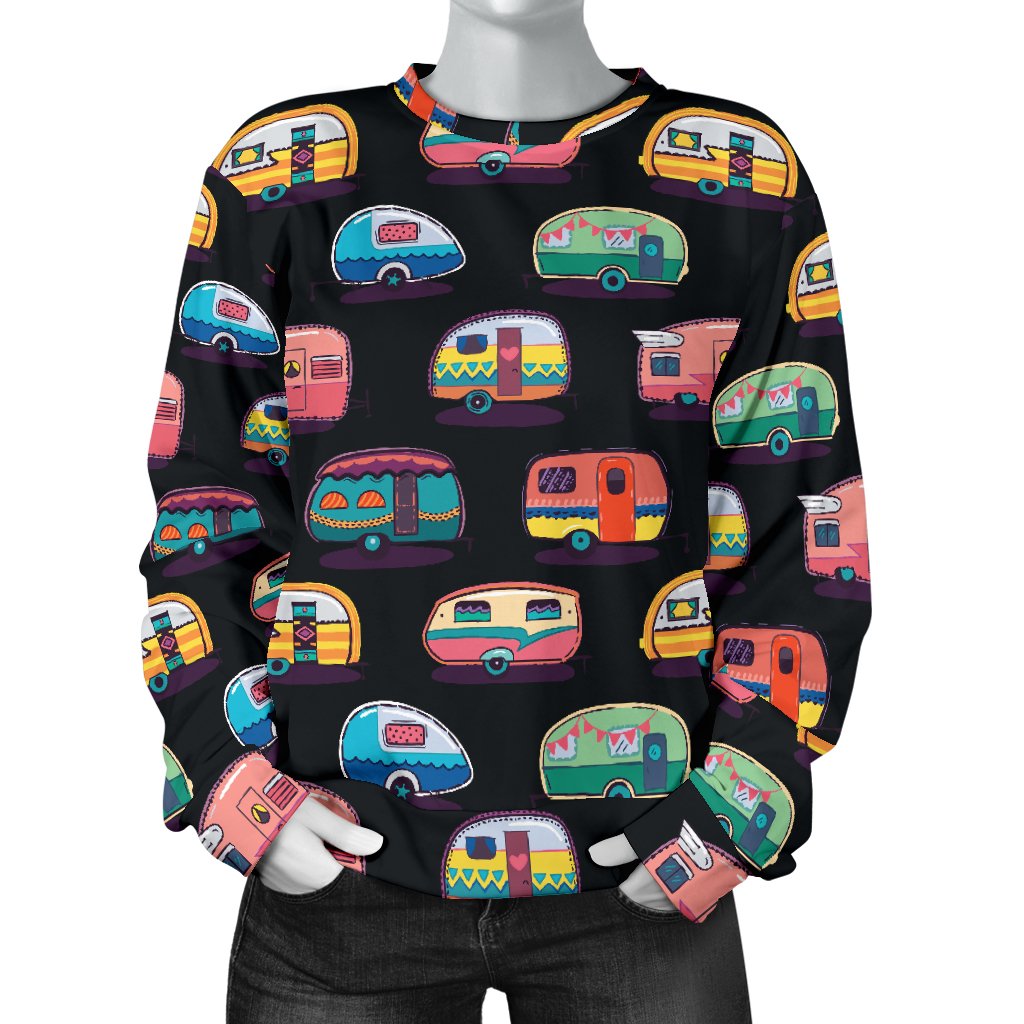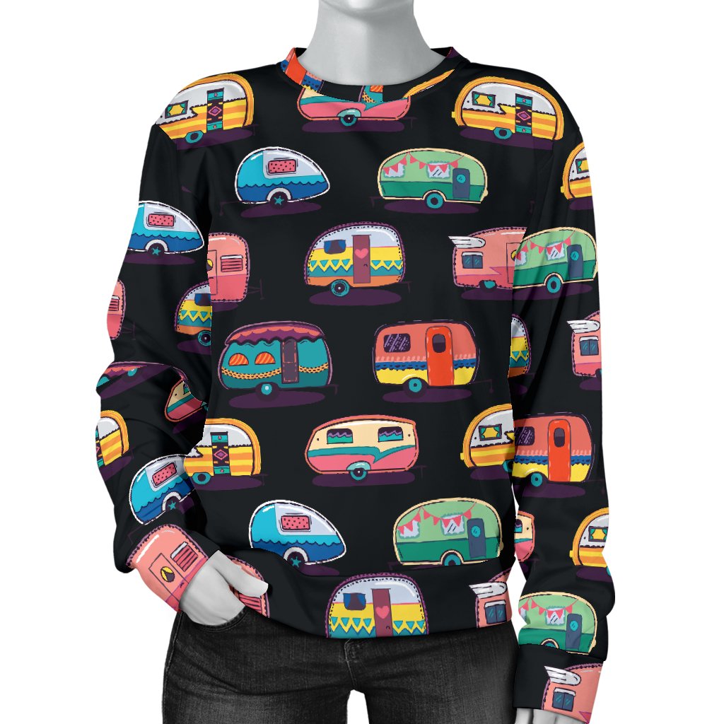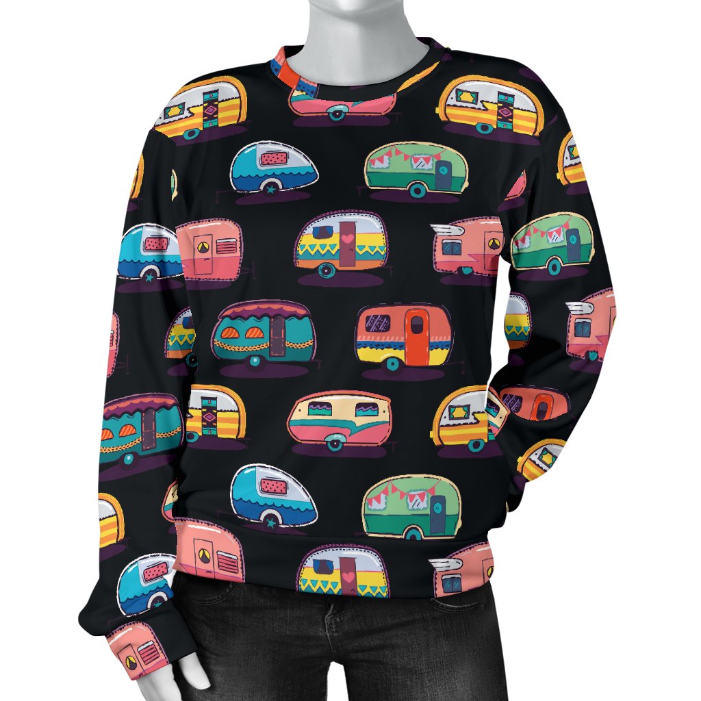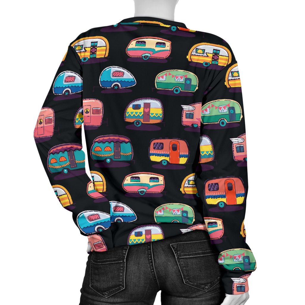 Camper Camping Pattern Women Crewneck Sweatshirt, This is a Unique Design and Made to Order Item. Hand printed, pressed and sewn with love in our factory just for your order!