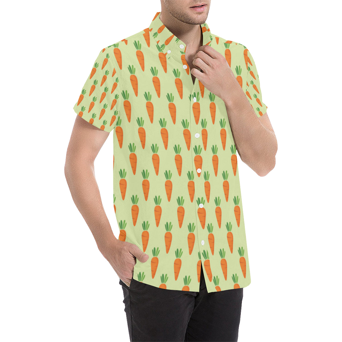Carrot Pattern Print Design 02 Men's Short Sleeve Button Up Shirt Made to Order Item. It is hand-cut and sewn just for your order! This process starts as soon as your order is placed and may have a processing time of 5-9 business days before it ships.