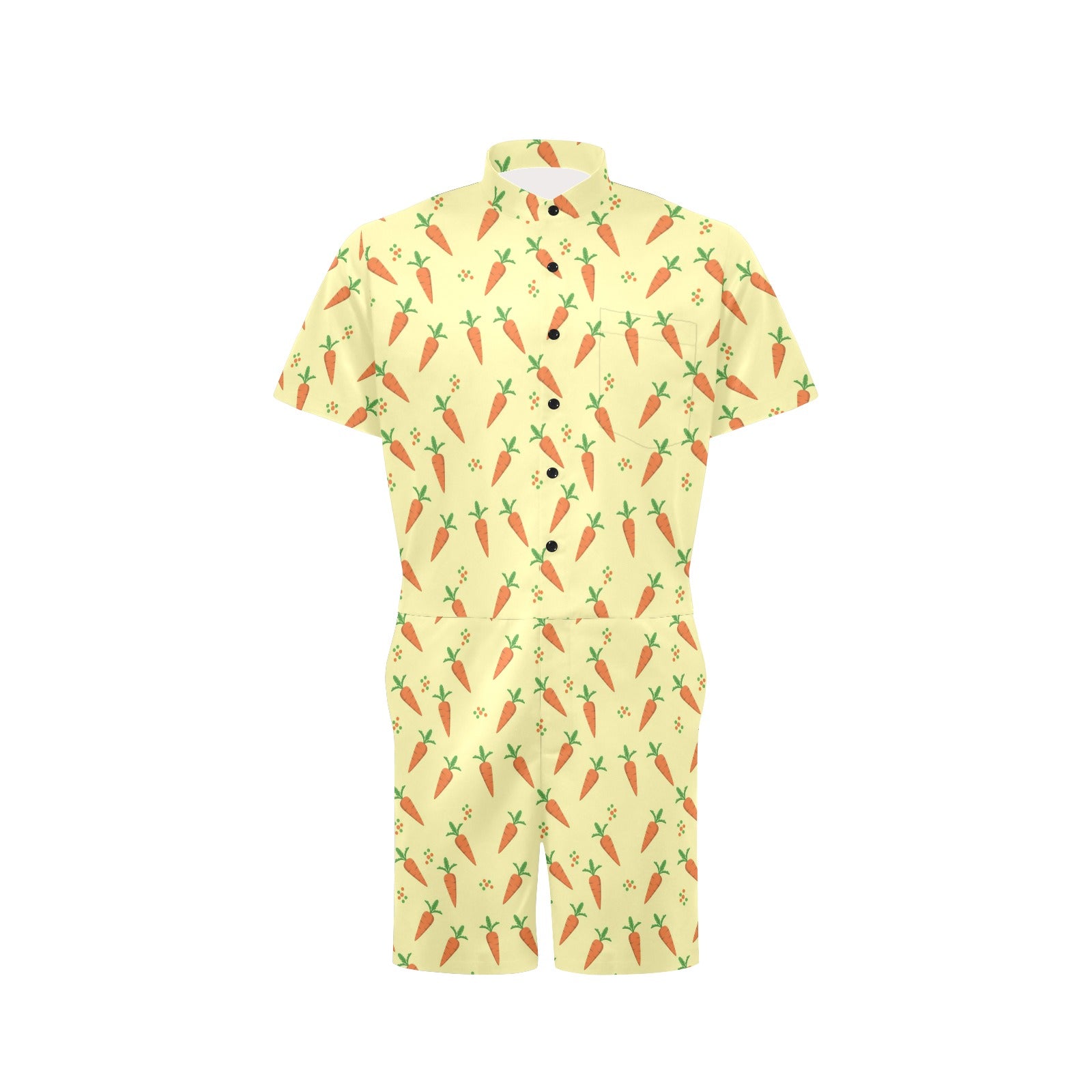 Carrot Pattern Print Design 04 Men's Romper Made to Order Item. It is hand-cut and sewn just for your order! This process starts as soon as your order is placed and may have a processing time of 5-9 business days before it ships.
